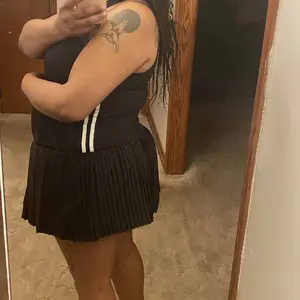 It’s a sexy dress and very short but I’d wear it with leggings the plights and lines on the sides gives it a sporty look and it has stretch in the material. Good fit just short 😊