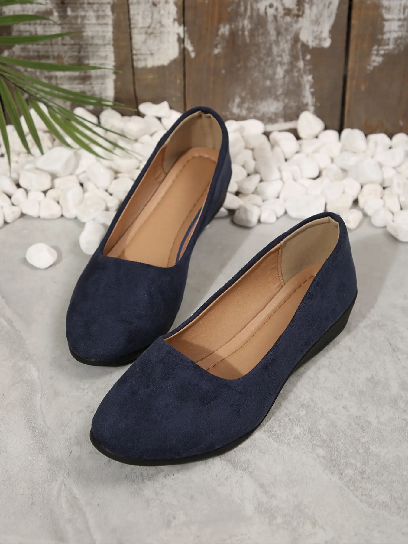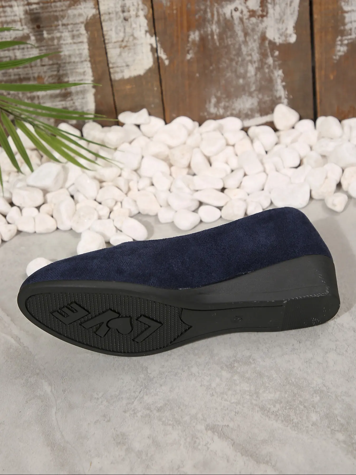 Half size larger, cute, just like pic, comfortable. Got it in navy and black