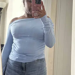This top is so cute and fits perfectly you can wear it on either shoulder there is no tag so itâs just up to preference!