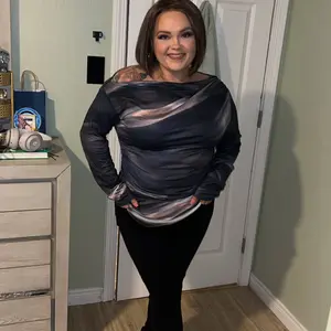This top is beyond beautiful. It fit me like a glove. Size large was true to the size. It’s stretchy and so comfortable!