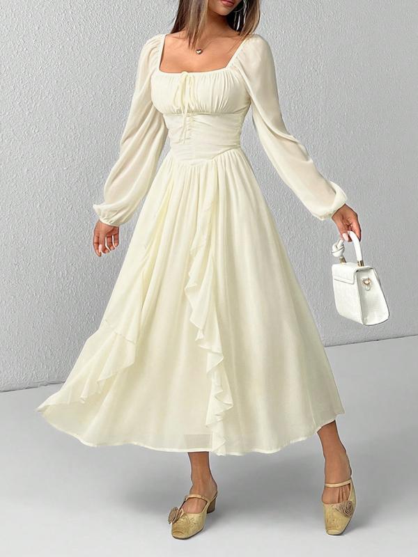 Women's Ruffle Lantern Sleeve Long Sleeve Cute Dress, Autumn Wedding Guest Renaissance Style, Back-To-School Graduation Gown, Milkmaid Dress #dresses #dresseswedding #loungedress #promdressinspo #quinceaneradresses #vintagedresses #weddinguestdress #winterdresshaul #bridalshowerdress #weddingoutfits