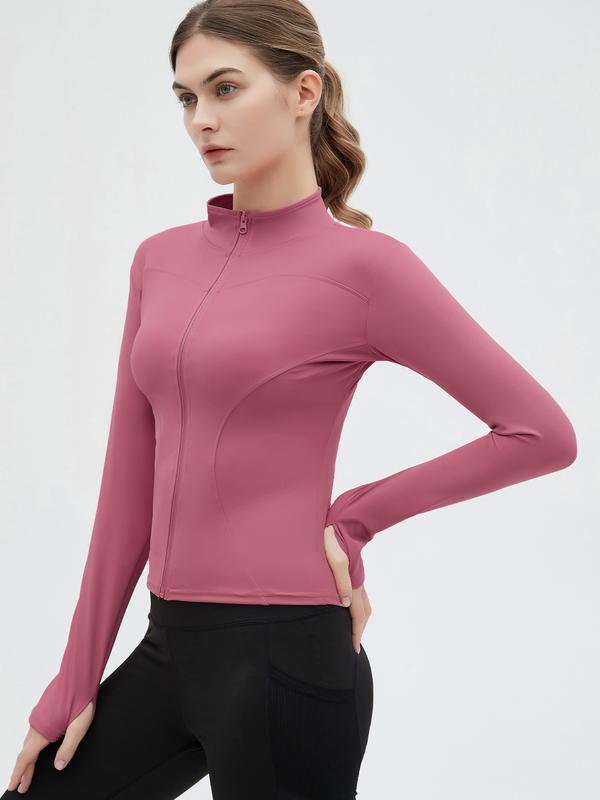 Women's Slim-Fitting Running Sports Jacket, Elastic Long Sleeve Yoga Zip Top, Casual Wear for All Seasons