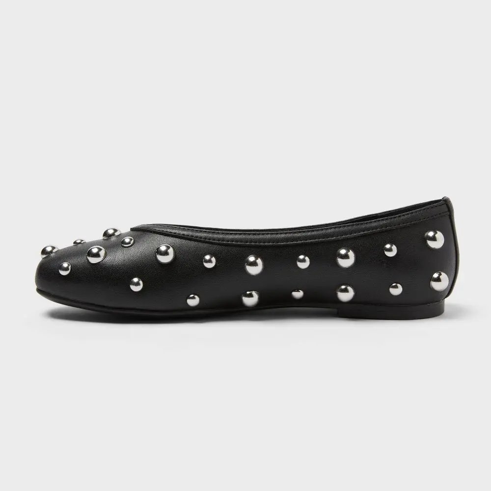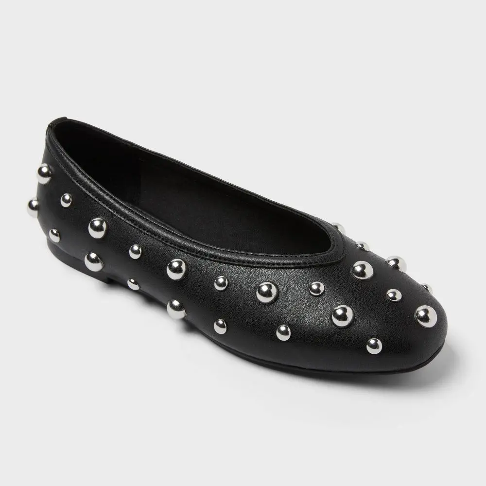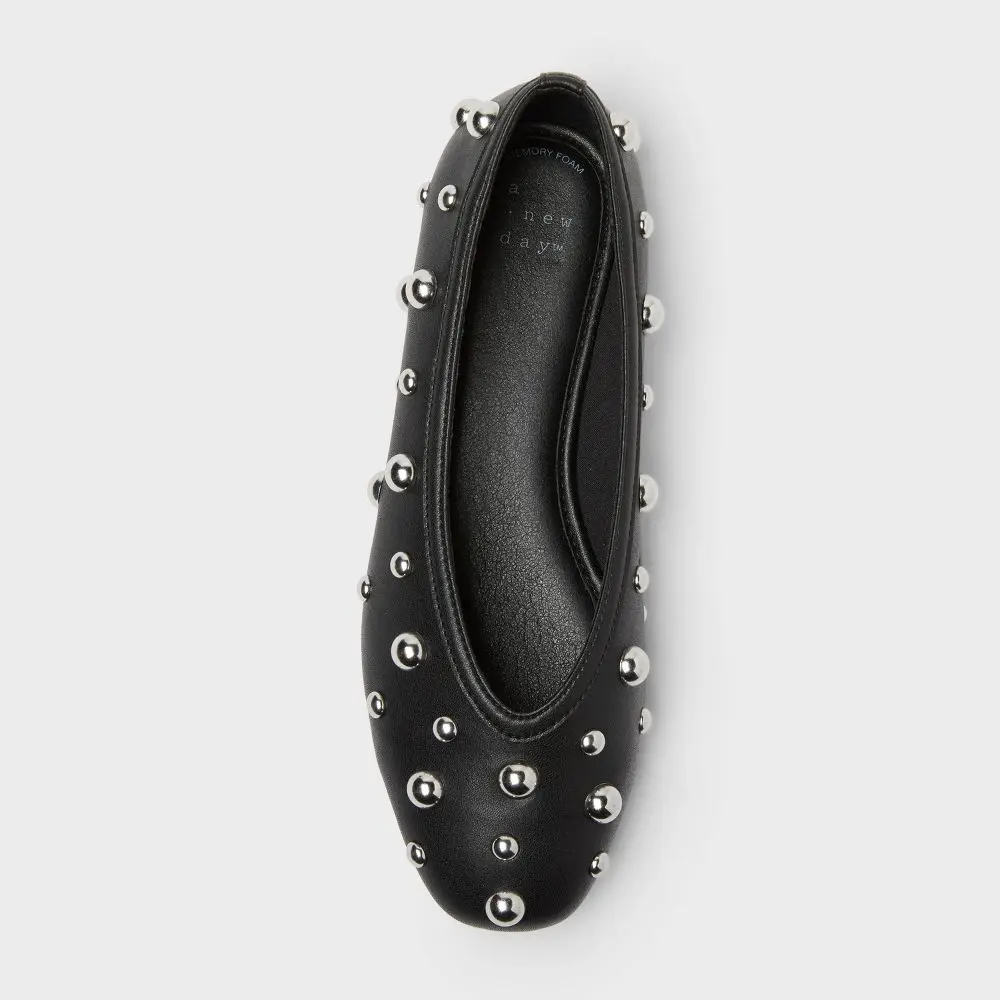 Give your outfit a cool finishing touch with these Sammie Studded Ballet Flats from A New day. These ballet flats features a closed almond-toe silhouette enhanced with allover studded detailing on the upper for a touch of glam sophistication. Plus, they boast memory foam insoles and cushioned footbeds for all-day comfortable walking.