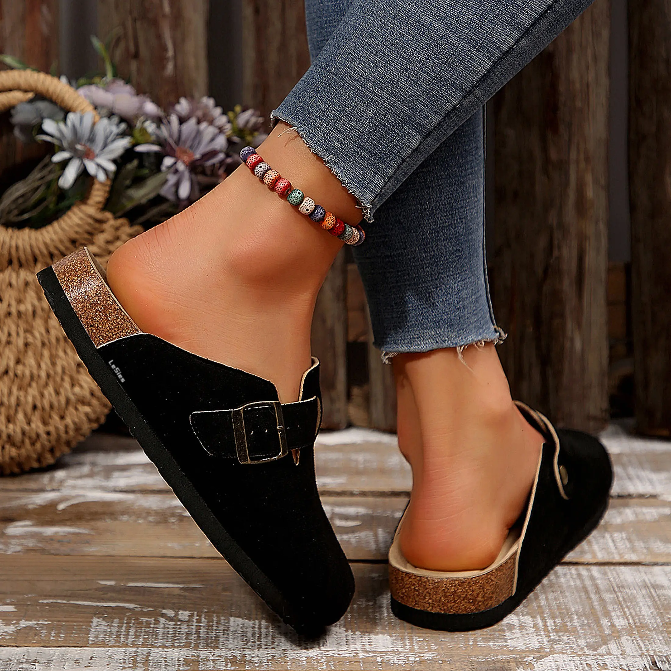 5. Women's Sandals Slip-on Potato Shoes Footbed Suede Cork Platform Slippers and Mules Potato Shoes