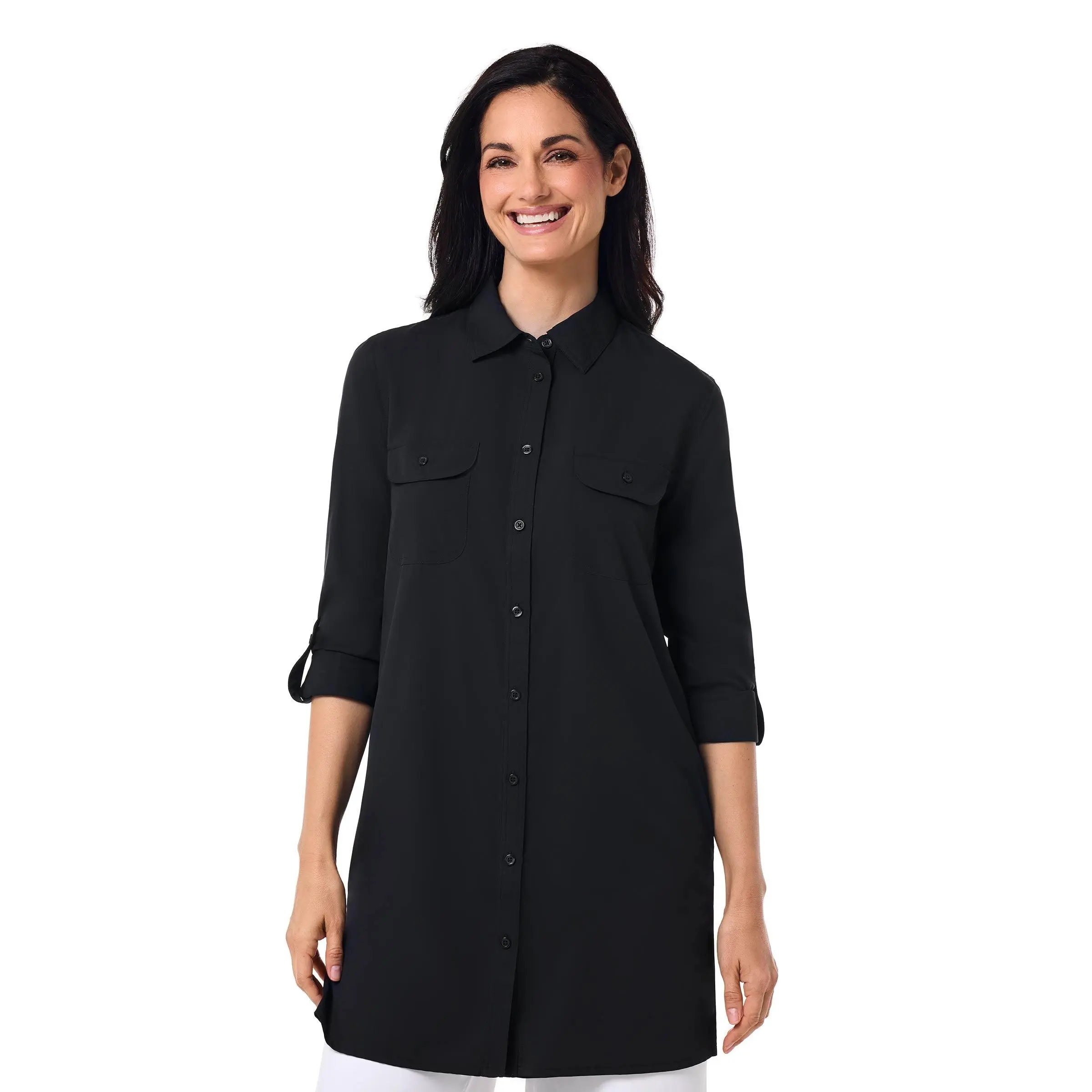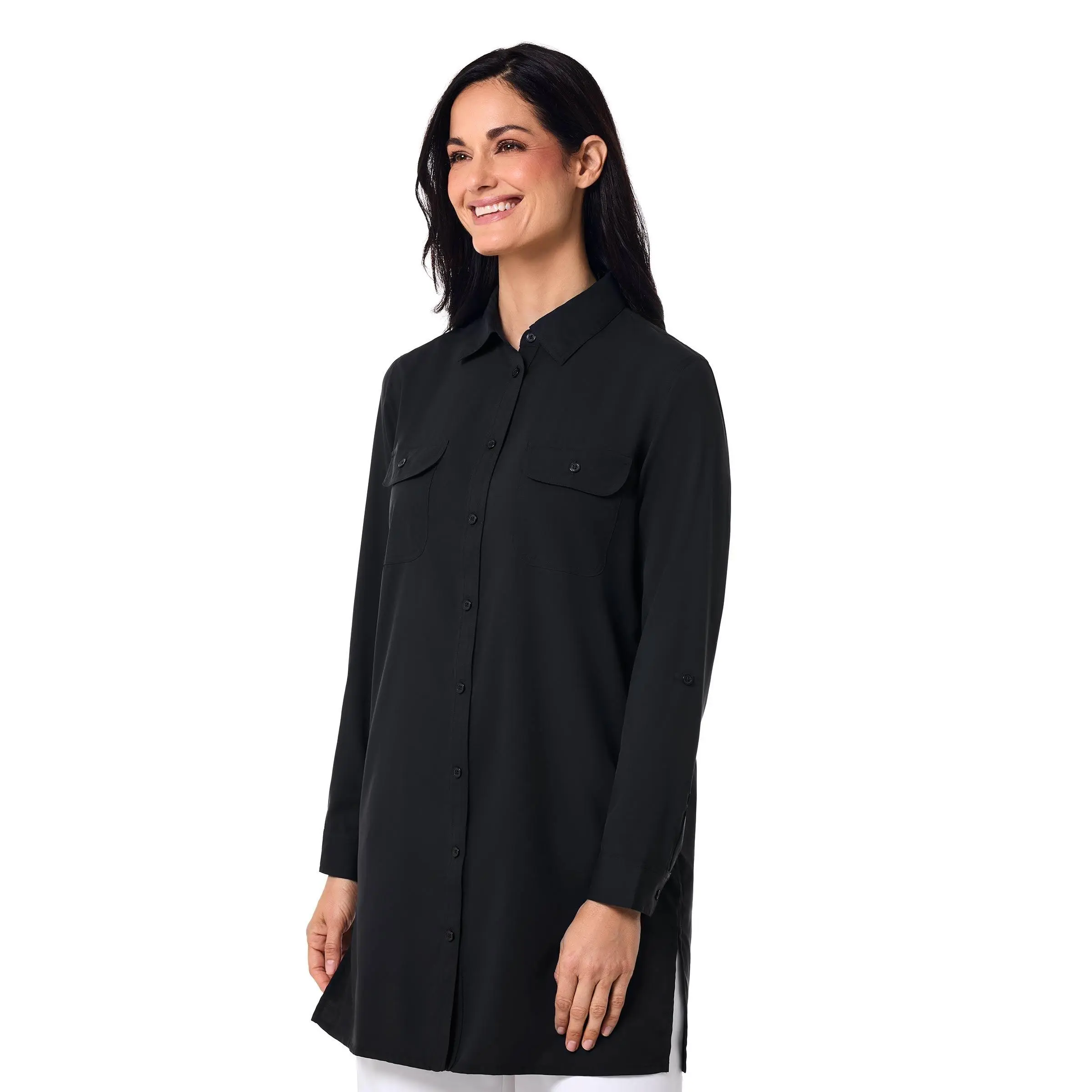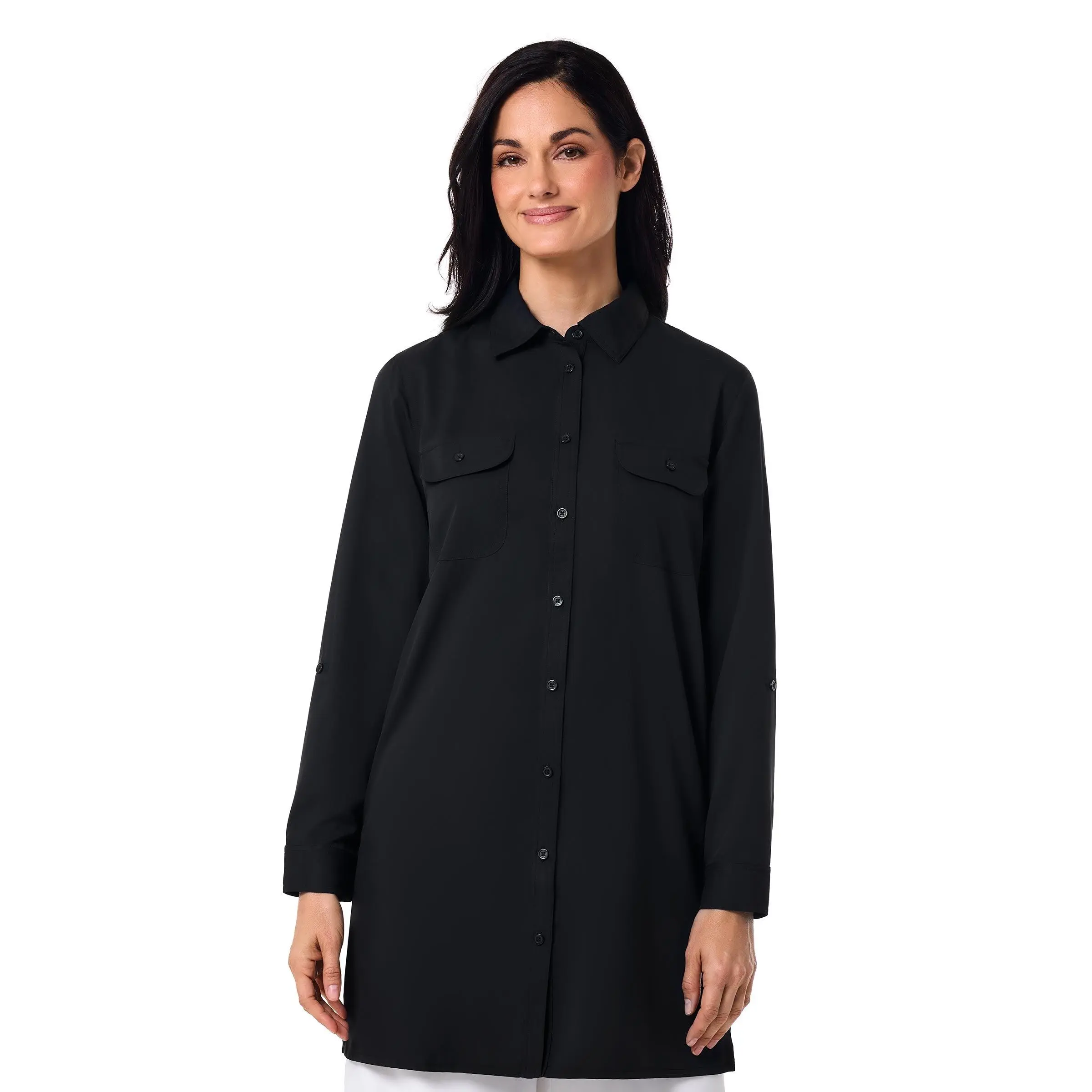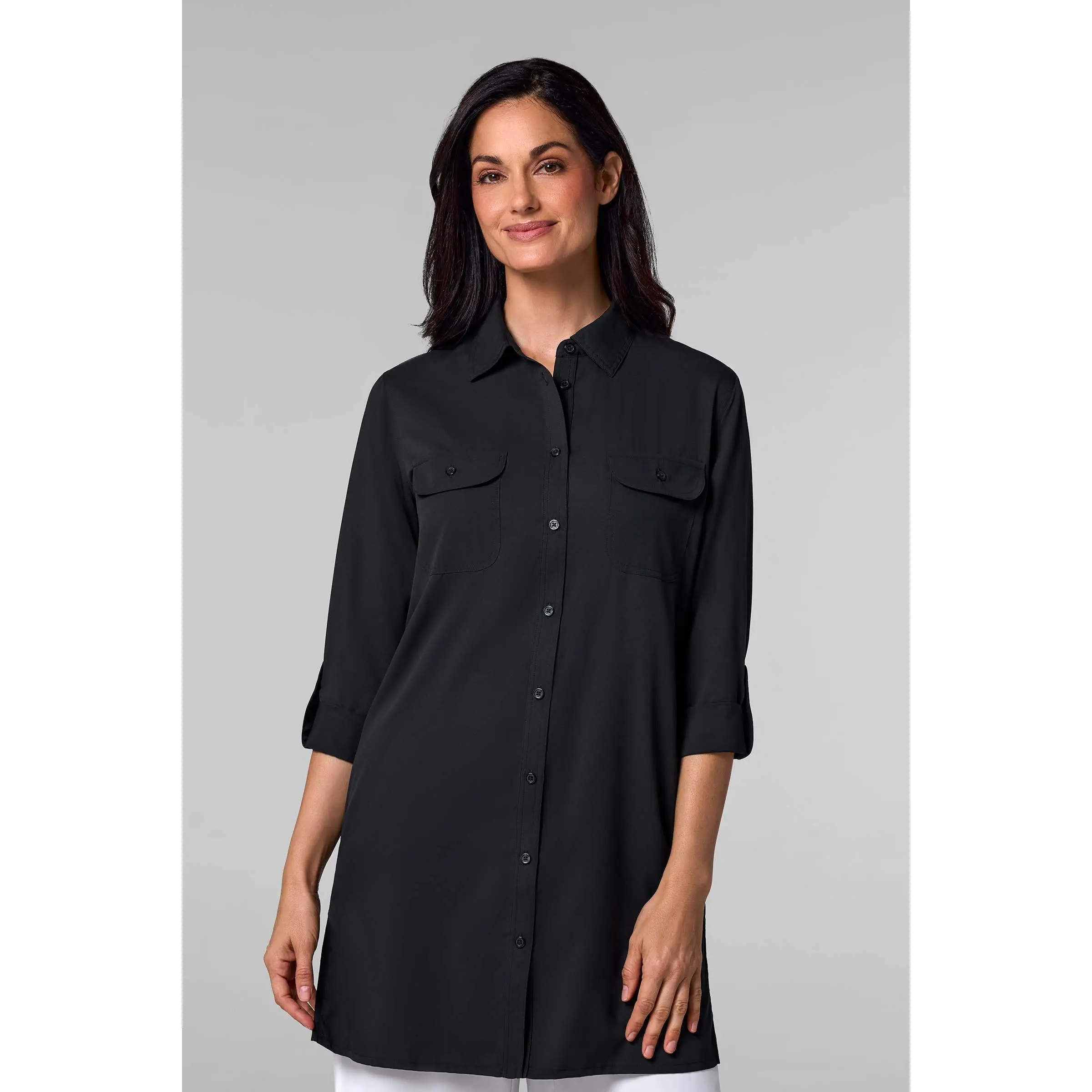 From sunrise to sunset, the Santorini Tunic Shirt moves effortlessly from secluded beaches to summer garden parties. Made from buttery-soft, lightweight Aire™ fabric, it provides UPF 50+ sun protection while keeping you cool and comfortable. Front chest pockets offer convenient storage for sunglasses or beachcombing finds, and the relaxed fit makes it ideal for layering over a tank top, swimsuit, or under a favorite wrap. Perfect for resort living, this tunic shirt doubles as a sophisticated beach cover-up.