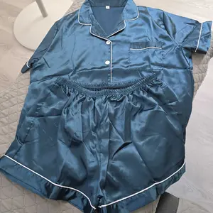 【Minimalist & Classic Design】: Embrace a timeless aesthetic with the women's basic satin pyjama lounge co-ord set, featuring a minimalist lapel collar, button front, and contrast binding that adds a touch of sophistication to your sleepwear collection.