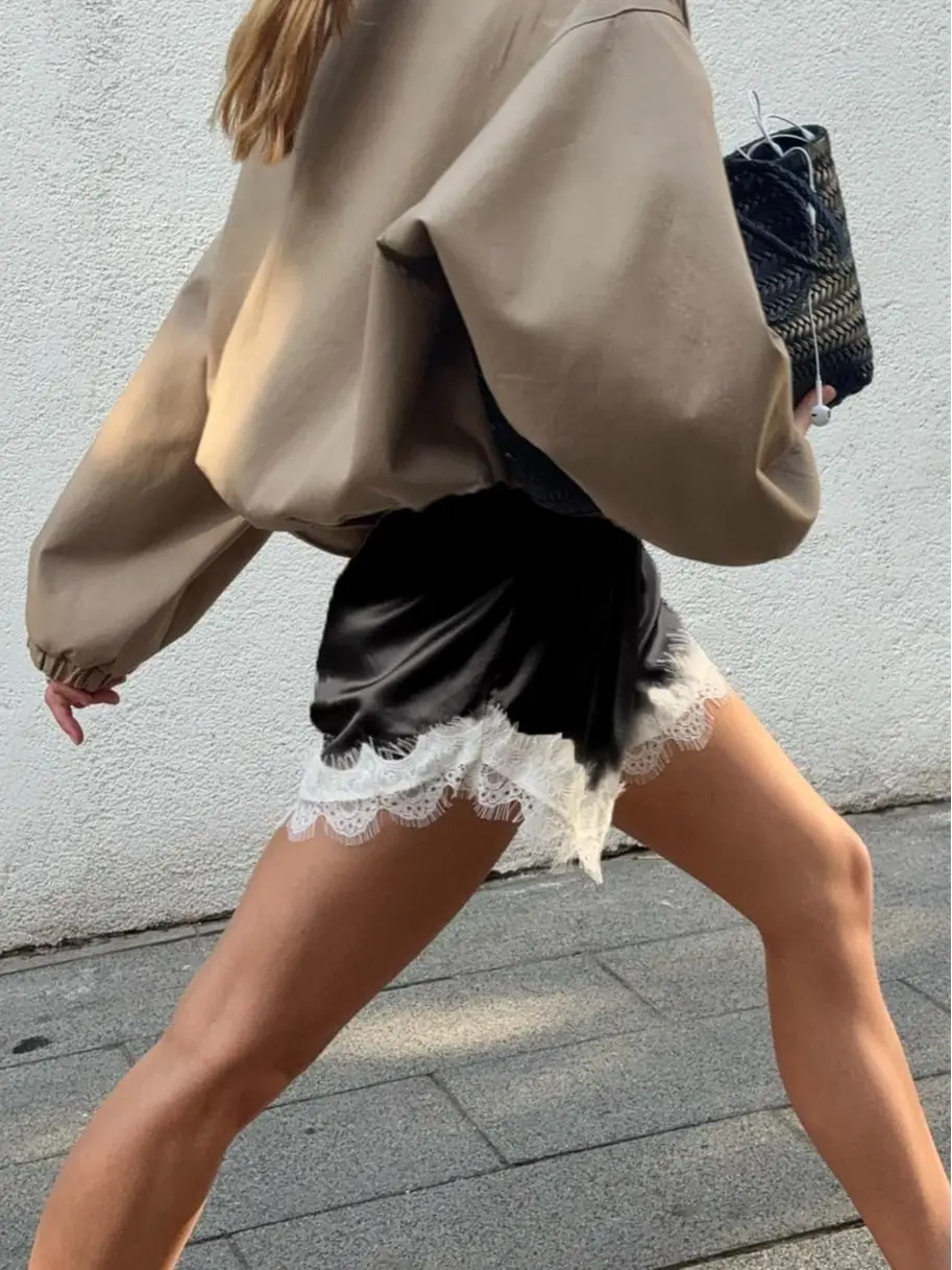 ·Material: Women lace trim patchwork mini micro shorts, elastic waistband, cute low rise micro shorts, sexy low waist satin silk shorts, made of high quality polyester blend fabric, lightweight, breathable, comfy and soft.