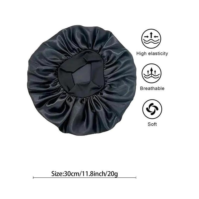 【Chic Fit】: Designed for a snug yet comfortable fit, ensuring the hair bonnet stays in place all night to preserve hairstyles effectively. 【Material Advantage】: Crafted from silky-soft satin, this hair bonnet reduces friction against hair, preventing breakage and preserving hair's moisture. 【Seasonally Versatile】: Lightweight and breathable, making it an ideal choice for summer but also comfortable enough for year-round use. 【Protective Design】: The plain yet elegant design not only serves a practical purpose in hair protection but also adds a touch of class to bedtime routines. 【Adjustable Comfort】: Features a slight stretch with an elastic band that can easily accommodate different head sizes and hair volumes, ensuring a perfect fit.