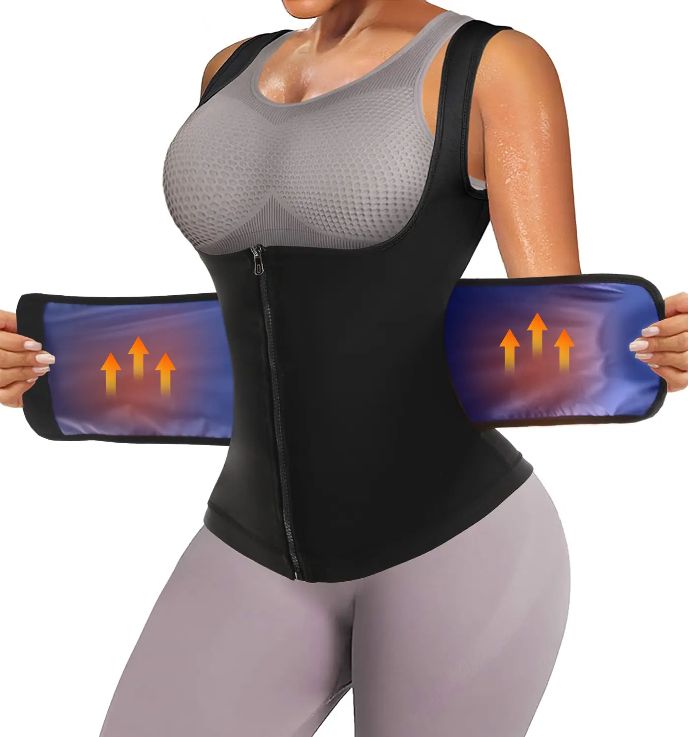 Women's Adjustable Zipper Sauna Tank Top, Tummy Control Shapewear Sleeveless Sauna Waist Trainer Vest Shirt for Women, Lady Workout Yoga Gym Exercise Clothing, Fajas Para Mujer