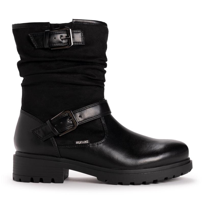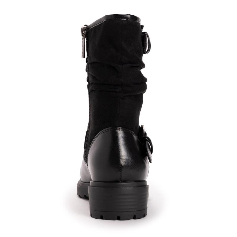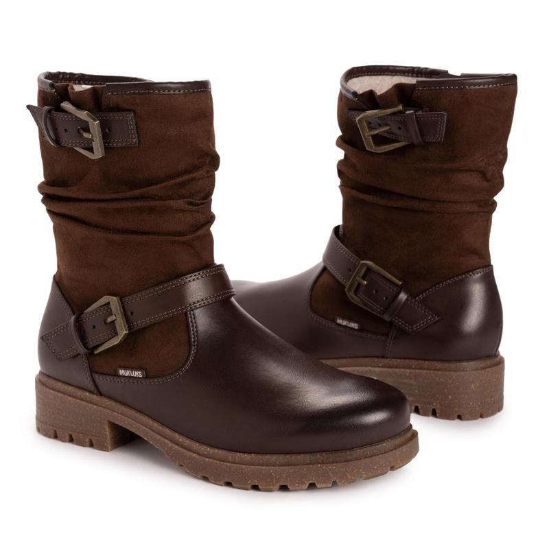 Simply classic with a touch of modern detailing, the MUK LUKS Women's Sabrina Boots are an updated version of the slouchy must-have boot in every woman's closet.  With decorative buckles and a lug sole, you'll reach for these side-zip boots to go with all your favorite outfits.  Wipe with a damp cloth to clean, no bleach, air dry.
