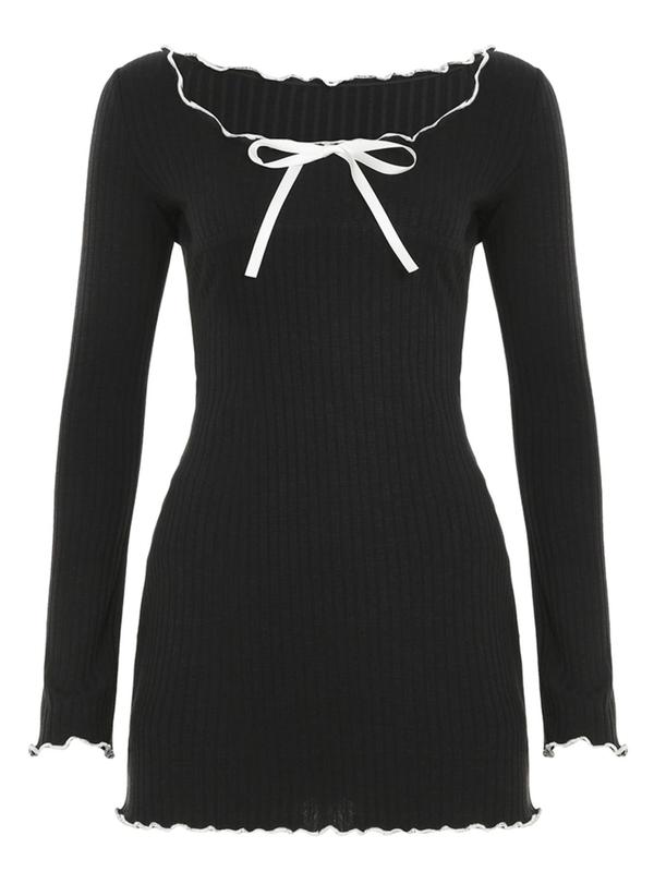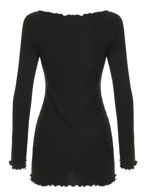 Women's Colorblock Ribbed Scoop Neck Dress, Casual Classy Elegant Minimalist Long Sleeve Short Dress for Summer, Fashion Lady Dress for Daily Wear, Bodycon Dresses, Womenswear, Date Night Dresses, Formal Elegant Dress, Bodycon Smooth Dress