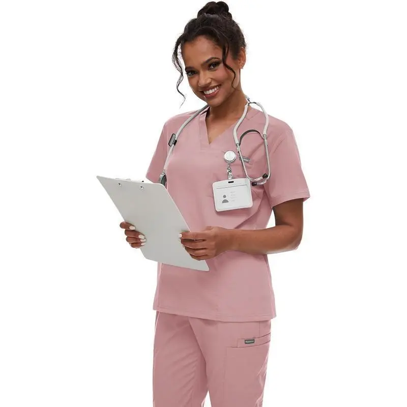 Scrub for Women| Classic V-Neck Top & Yoga Jogger Pants Medical Uniform Scrub SetComfort Meets Style – Designed for Healthcare Professionals/Why Choose This Scrub Set?️Premium Fabric Blend: Soft, breathable, and moisture-wicking material for all-day comfort during long shifts.️Timeless V-Neck Design: Classic cut with adjustable drawstring waist for a flattering fit and effortless style.️Flexible Yoga Joggers: Stretchable jogger pants with elastic ankle cuffs for unrestricted movement – perfect for active tasks.️Durable & Easy-Care: Machine washable and wrinkle-resistant, maintaining its shape and color after repeated use.️Versatile Utility Pockets: Multiple pockets (top & pants) for pens, ID cards, or small tools – stay organized on the go./Perfect For:Nurses, Doctors, and Medical Staff| Gyms & Fitness Enthusiasts (off-duty style)|️Casual Wear for Everyday Comfort/Why Shop Here?Ethically Sourced: Eco-friendly materials with sustainable production practices.True to Size: Detailed size chart ensures the perfect fit every time.Quick Shipping: Delivered in 5-7 business days with tracking./Upgrade Your Workwear – Ditch the boring scrubs and embrace functionality and fashion. Order now and experience the difference!
