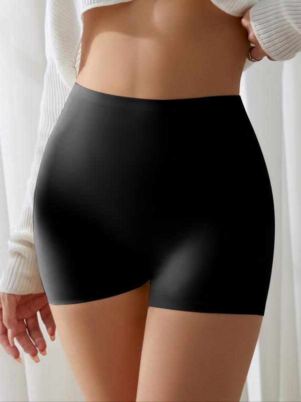 Women's Seamless Briefs Set, Abdominal Control Mid-Waist Underwear, Anti-Curling Safety Pants, Casual Fitted Plain Design, All Seasons