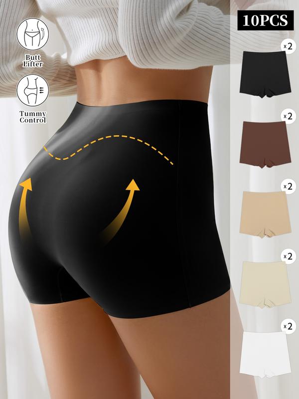 5. Women's Seamless Briefs Set, Abdominal Control Mid-Waist Underwear, Anti-Curling Safety Pants, Casual Fitted Plain Design, All Seasons