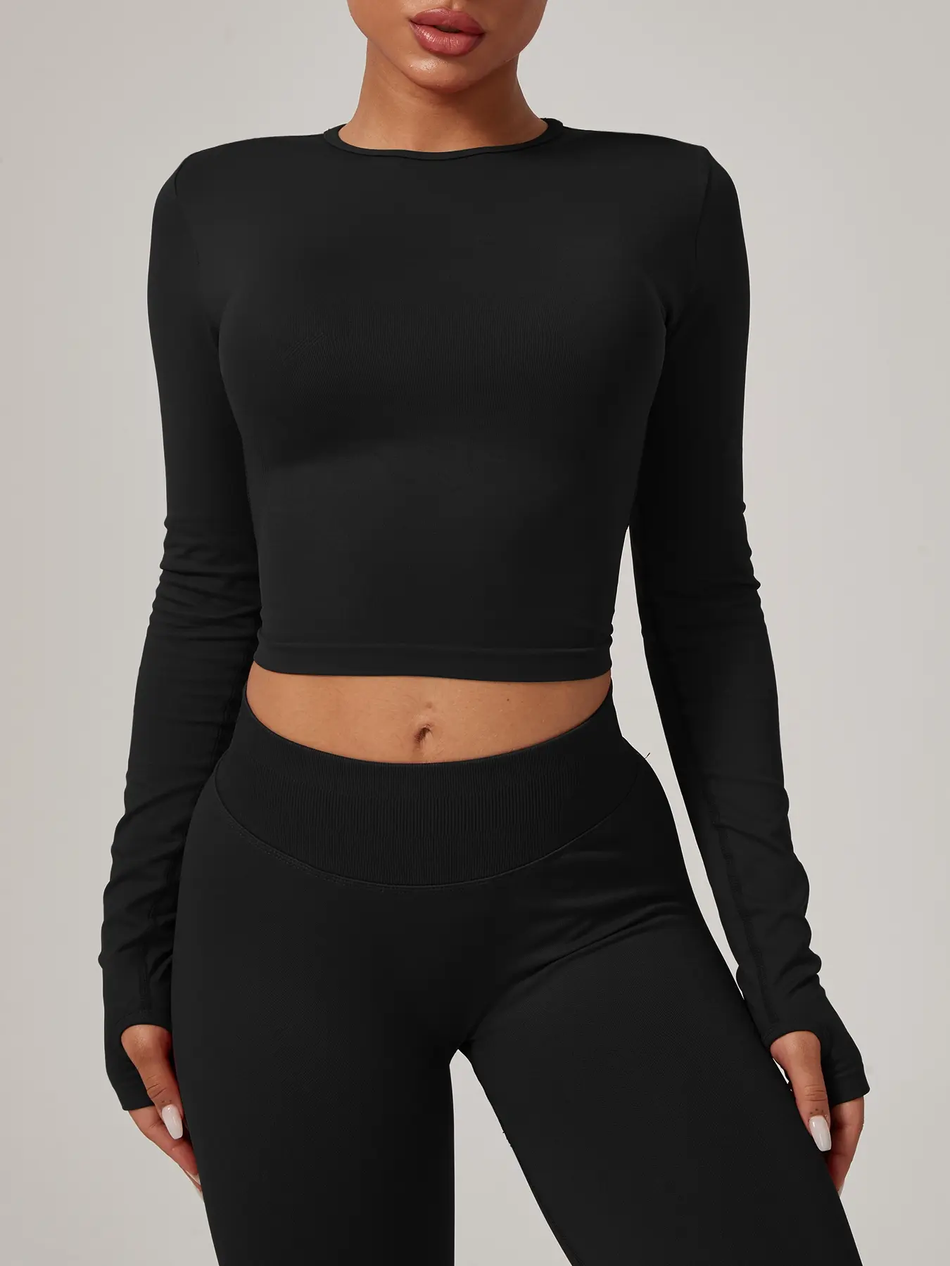 Women's Seamless Knitted Long-Sleeved Sports T-Shirt, Slim-Fit Waist-Cinching Inner Layer, Quick-Drying Elastic Thumb Holes, Breathable Running Top #workoutfit #workoutoutfit #fitnessfashion #summeractivewear #workoutoutfits #workouttops #activewearobsessed #pilatesoutfitideas #fitnessclothing #trendyactivewear