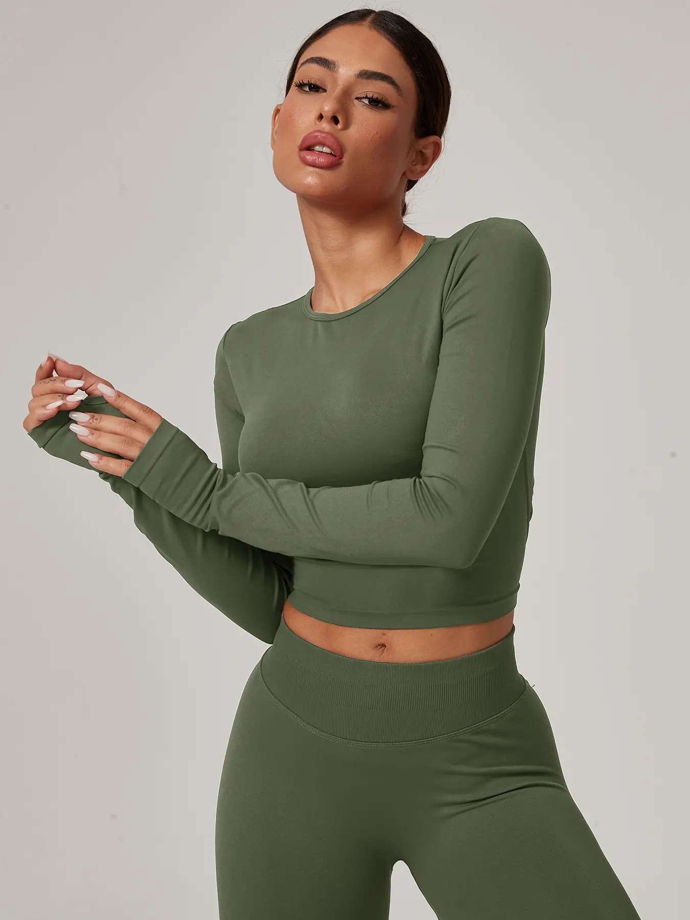 Women's Seamless Knitted Long-Sleeved Sports T-Shirt, Slim-Fit Waist-Cinching Inner Layer, Quick-Drying Elastic Thumb Holes, Breathable Running Top #womensactivewear #flatteringactivewear #womensportswear #fallactivewear #sportwearset #athletictops #womensgymclothes #lululemonoutfit #tallwomensclothing #athleticclothing