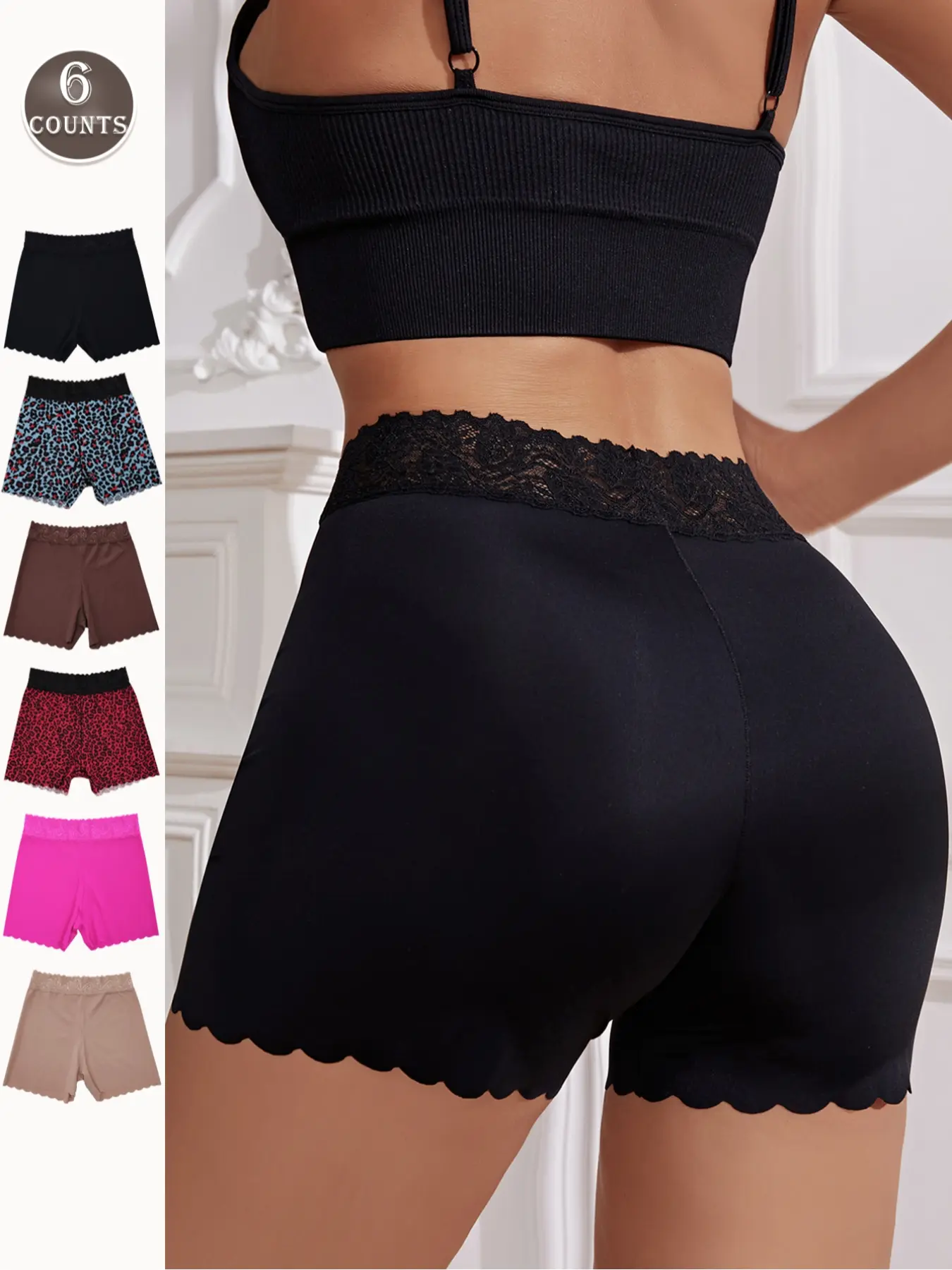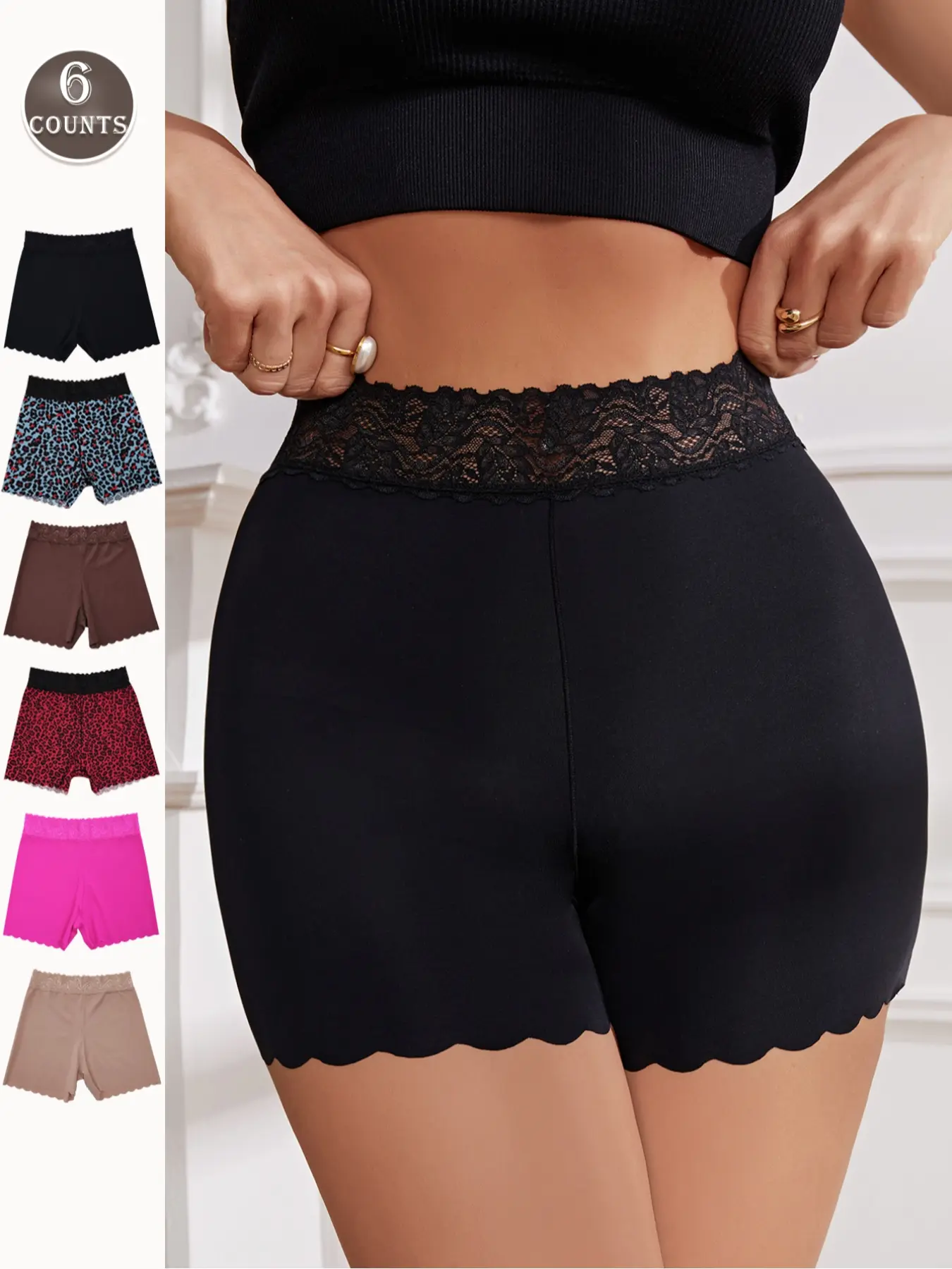 6PCS Women's Comfortable Lace Trimmed Underwear Set Seamless Panties Collection, Breathable & Stylish Design for Daily Wear Trim Lace Panty
