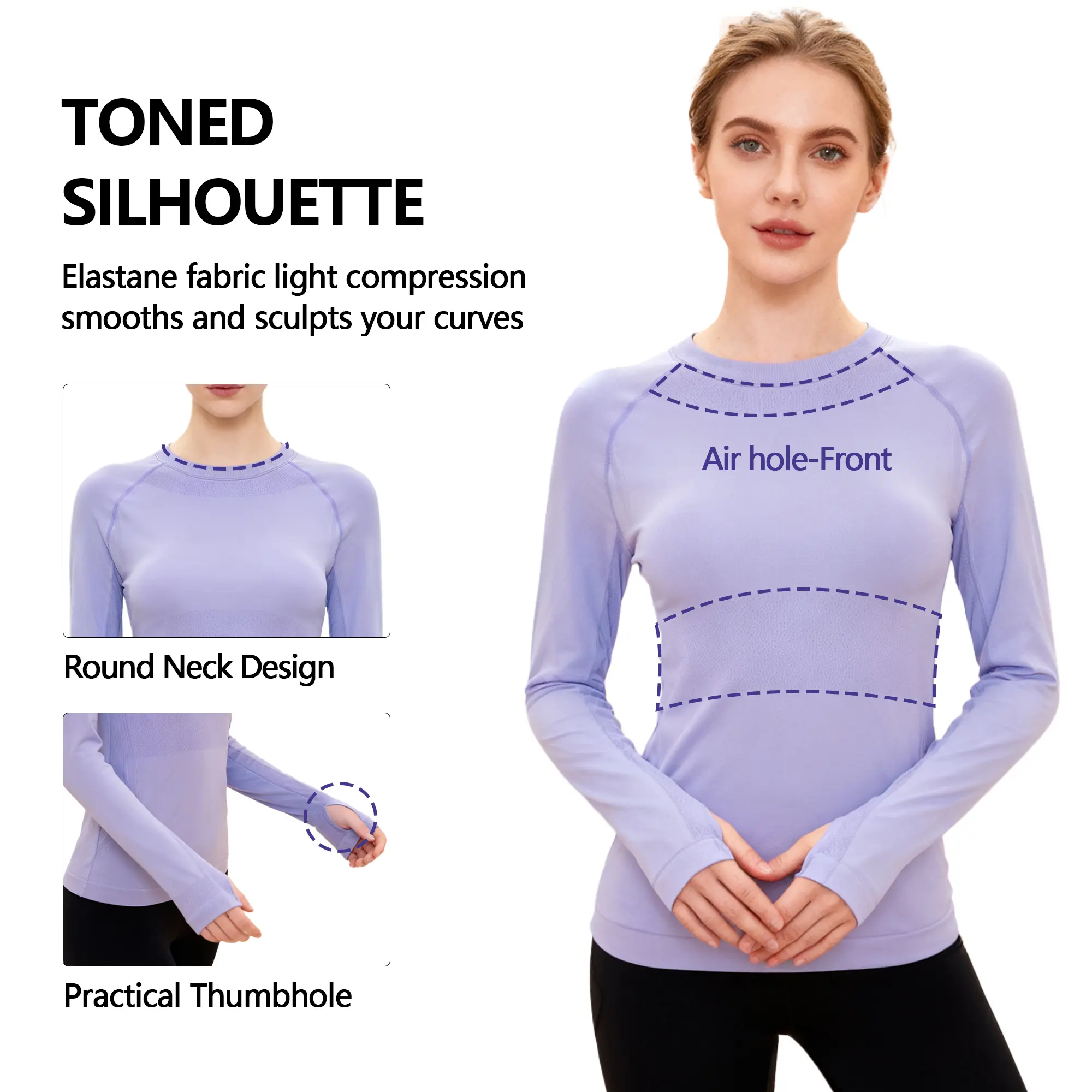 Amazing tops! Super soft and has that silky/stretchy material. I love the thumb holes. I am 128lbs, My Bust size is 36", Waist line - 32", High Hip/Hip line 36" and the Large fit me perfectly. All 3 pair of leggings in these pictures are also from this shop. I highly recommend getting some.