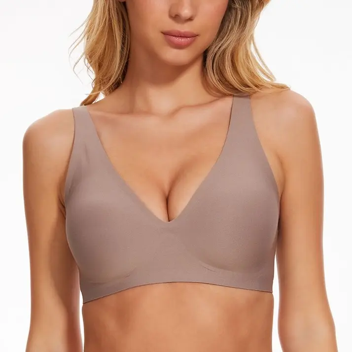 2.Ultimate Comfort: The Deep V Seamless Bra is designed withno underwire and made of 55% Nylon and45% Elastane, which provides a perfect blend of comfort and support.