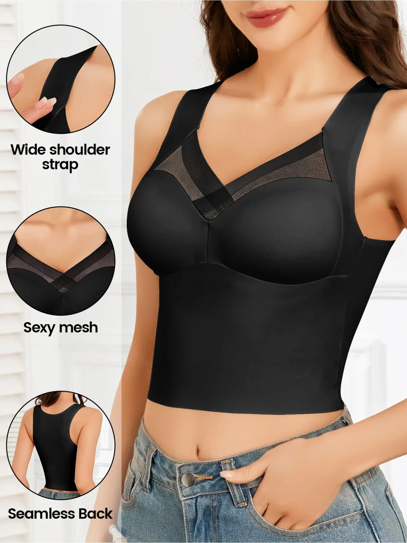 【Wireless Support】: Features a wireless bra type, providing medium support without the discomfort of underwires.