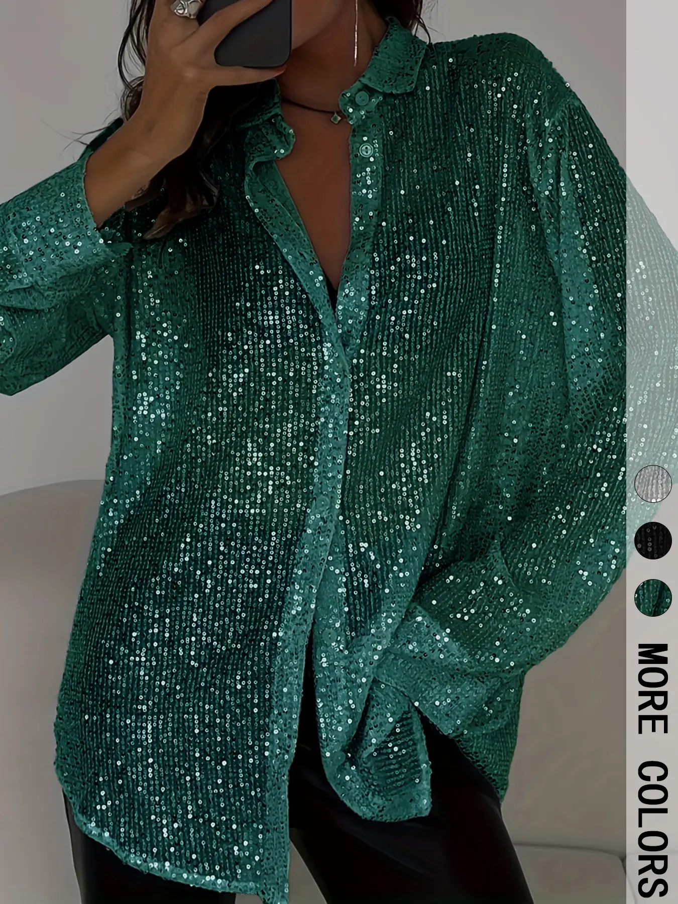 What a cute fun piece this sequin button down shirt is! #tiktokshopfinds #plussize