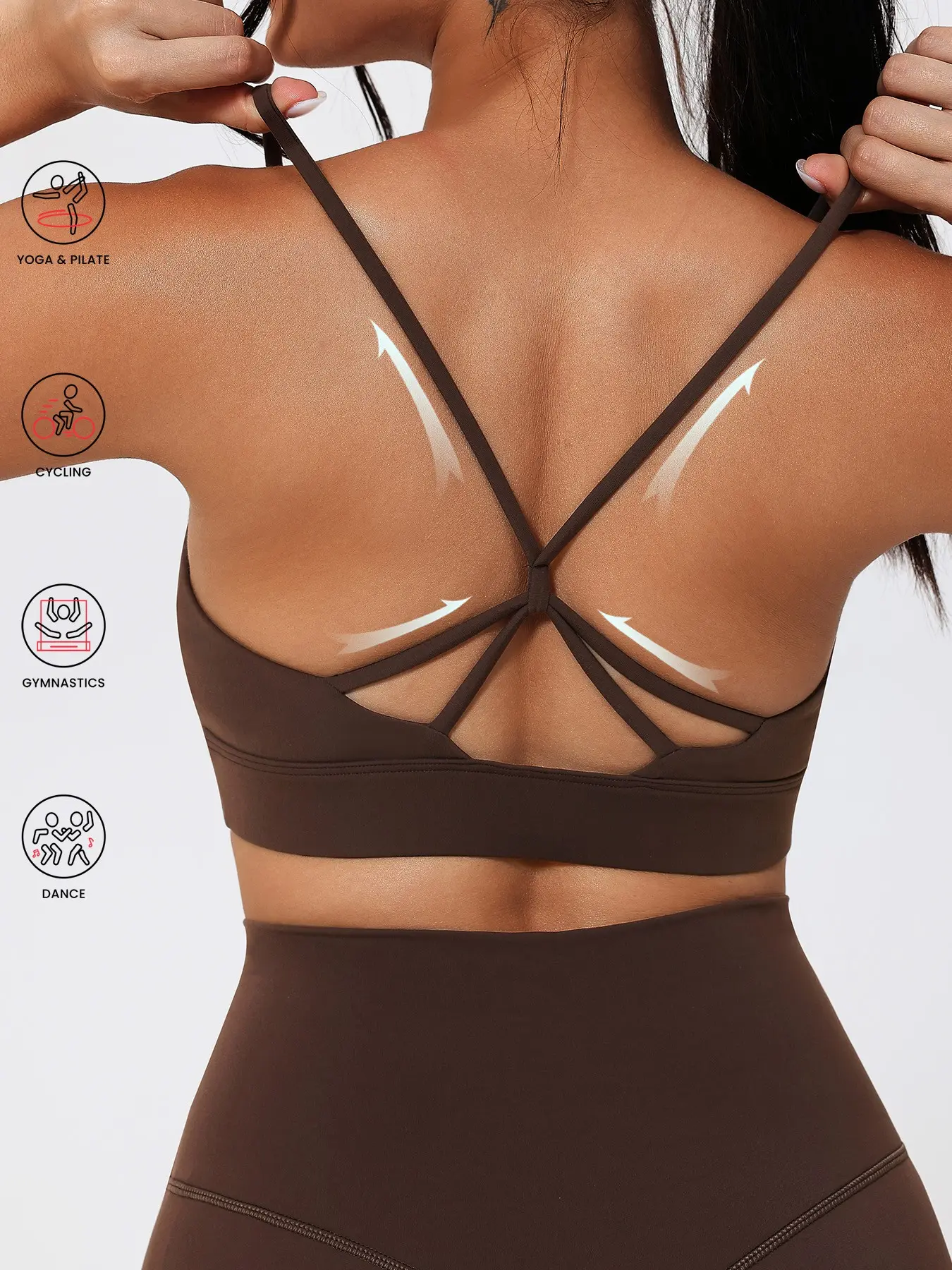 【Cross-back Straps】: Featuring dual fine straps and a cross-back design, this sports bra enhances support and visual appeal.