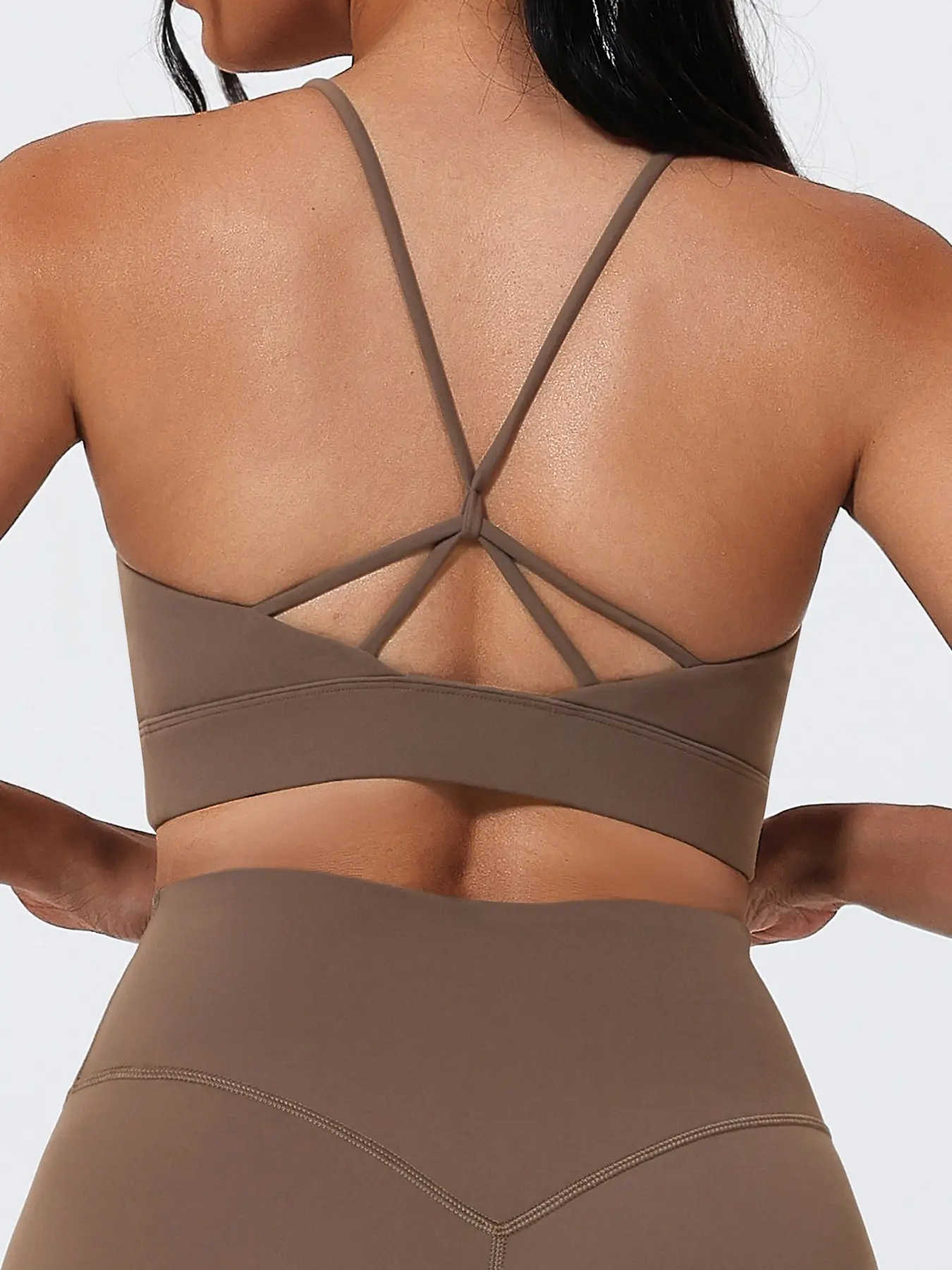Women's Sexy Backless Sports Bra, Yoga Underwear, Cross-Back Design, Nylon Spandex Fabric, Soft Breathable Comfort, All Seasons
