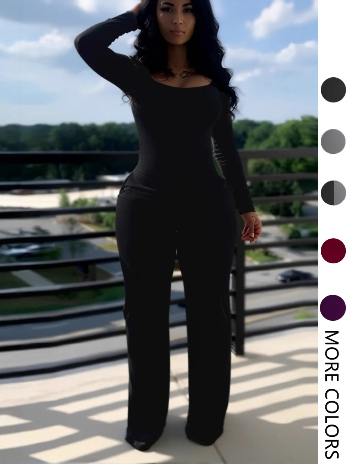 Women's Sexy Plain Long Sleeve Jumpsuit, Fall & Winter Fashion#jumpsuit #bodysuit #streetwear #tiktokshop #spotlightfinds