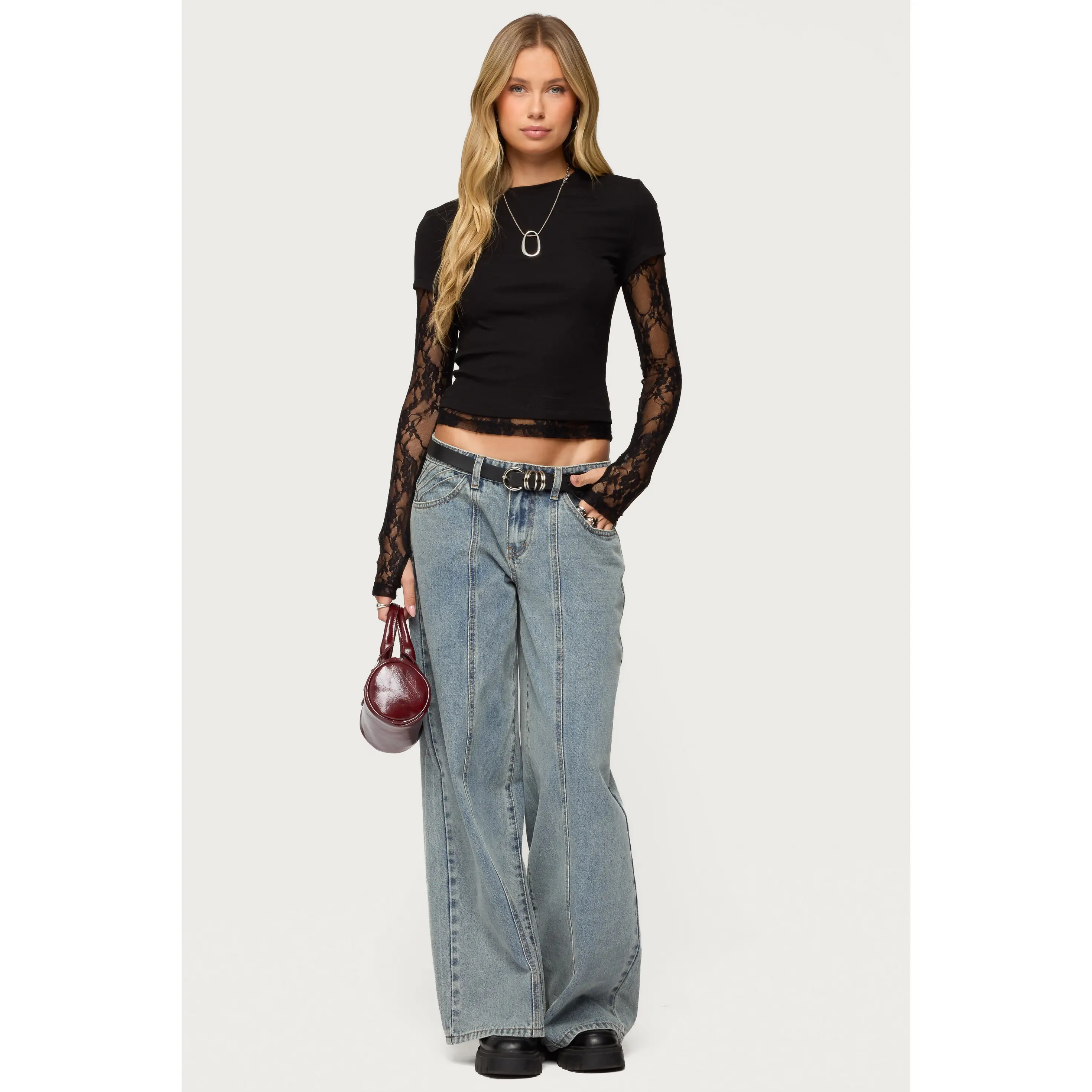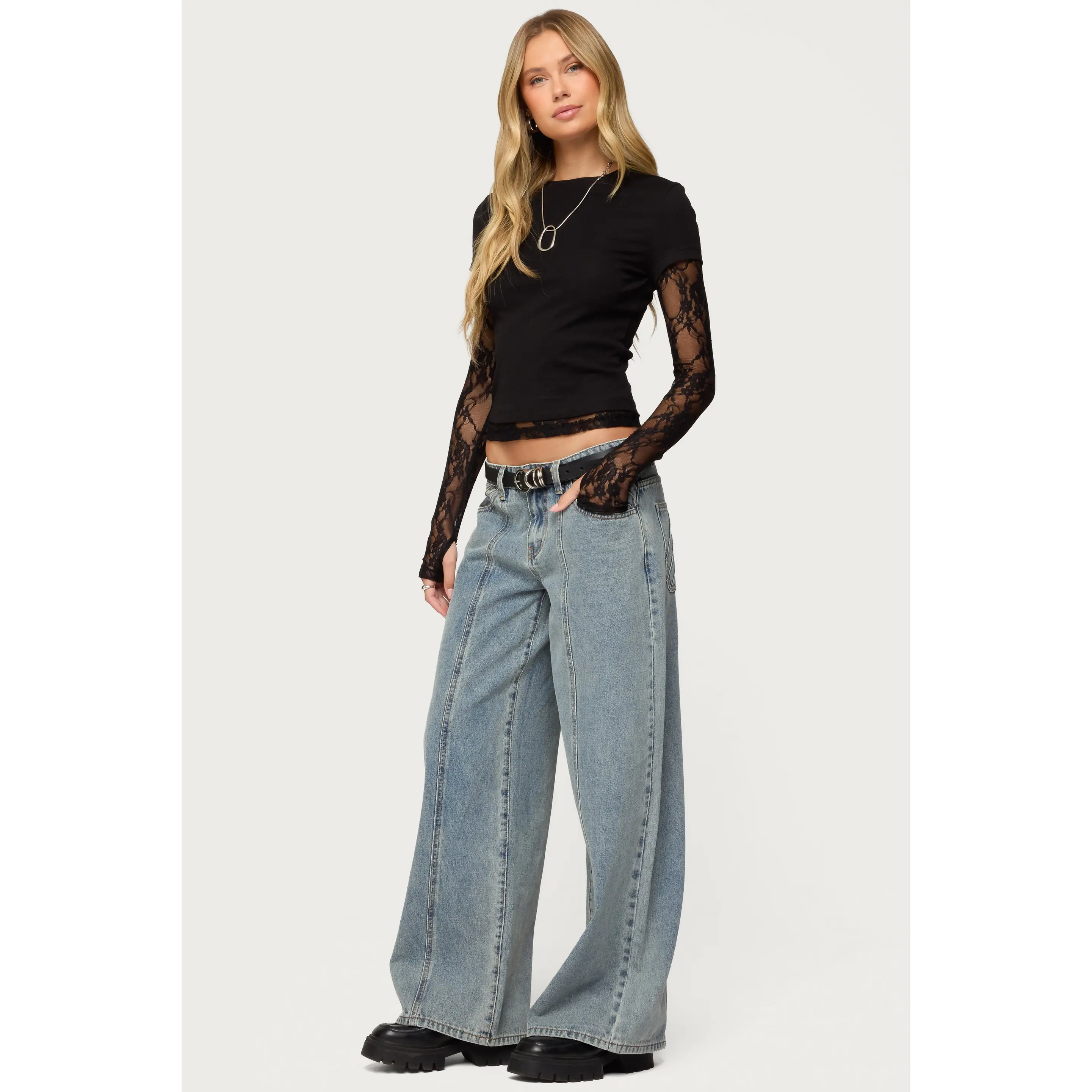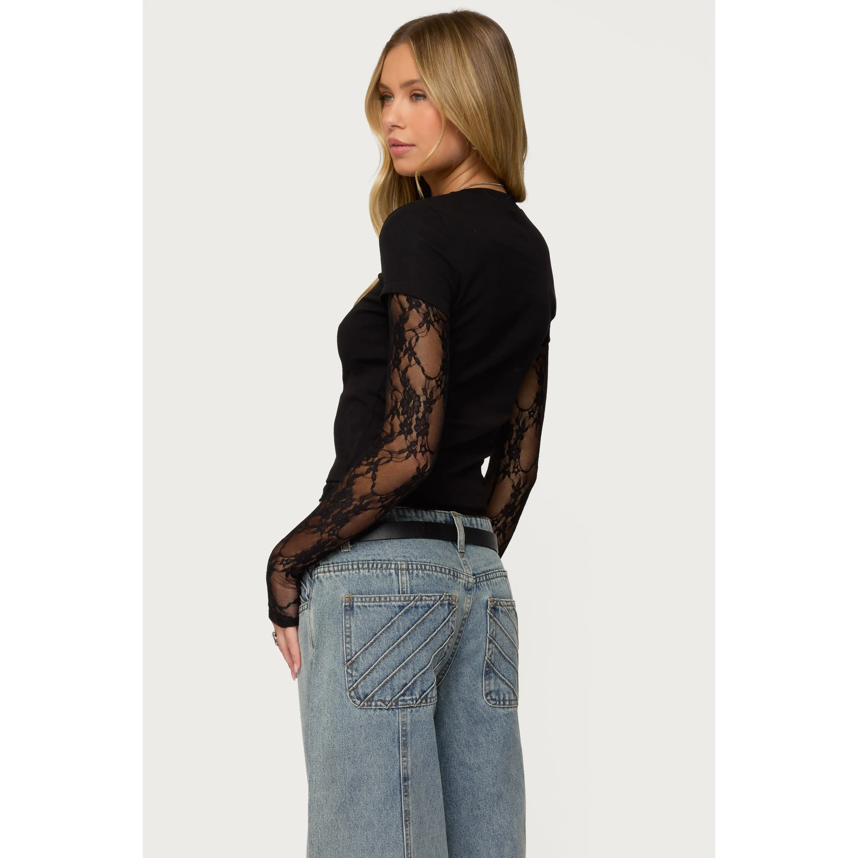 i really like this shirt! i love the lace detailing and i was so excited to find out the sleeves have little thumb holes! :)