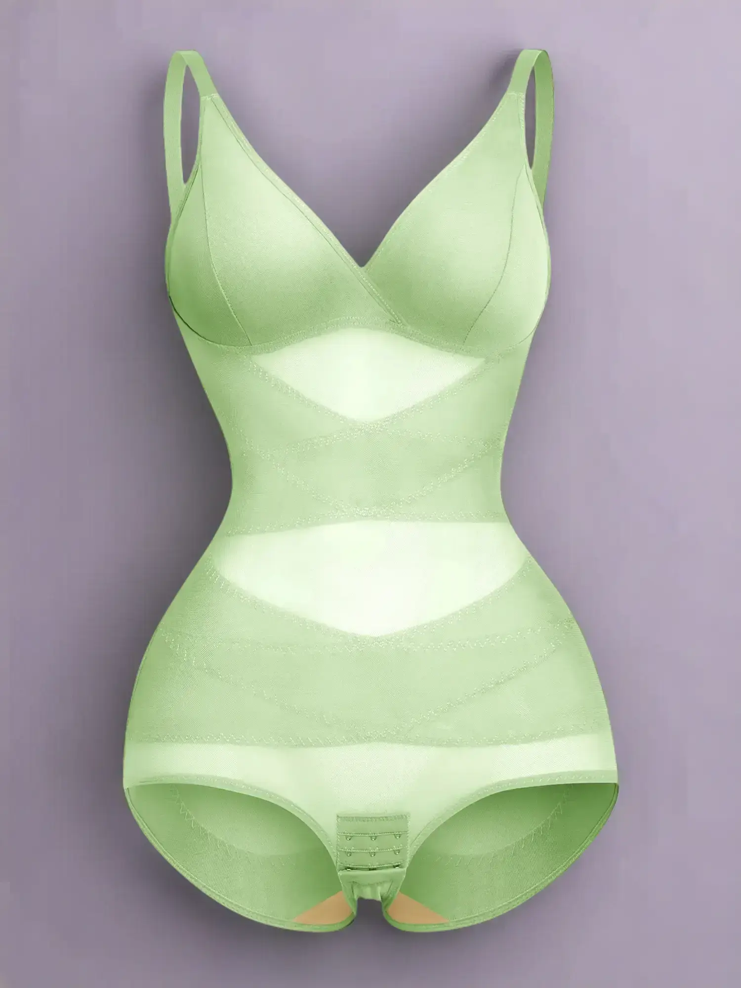 5. Women's Sheer Mesh Bodysuit High Elastic Breathable Fabric V Neck Full Body Shaping Underwear, Casual All Season Wear, Shapewear