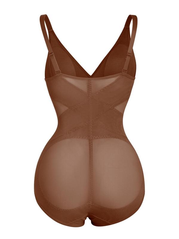 Women's Sheer Mesh Bodysuit High Elastic Breathable Fabric V Neck Full Body Shaping Underwear, Casual All Season Wear, Shapewear