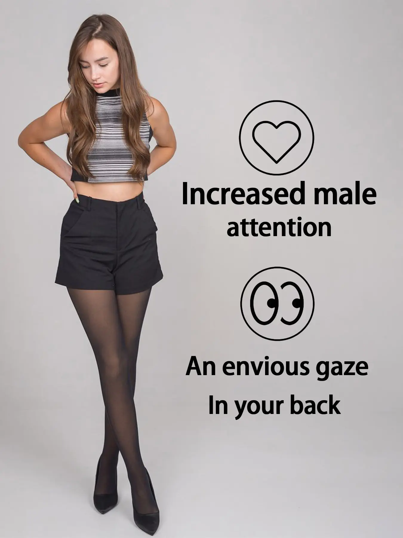 【Sheer Fabric】: The thin, black semi-sheer material provides a delicate aesthetic while enhancing the legs' natural look.
