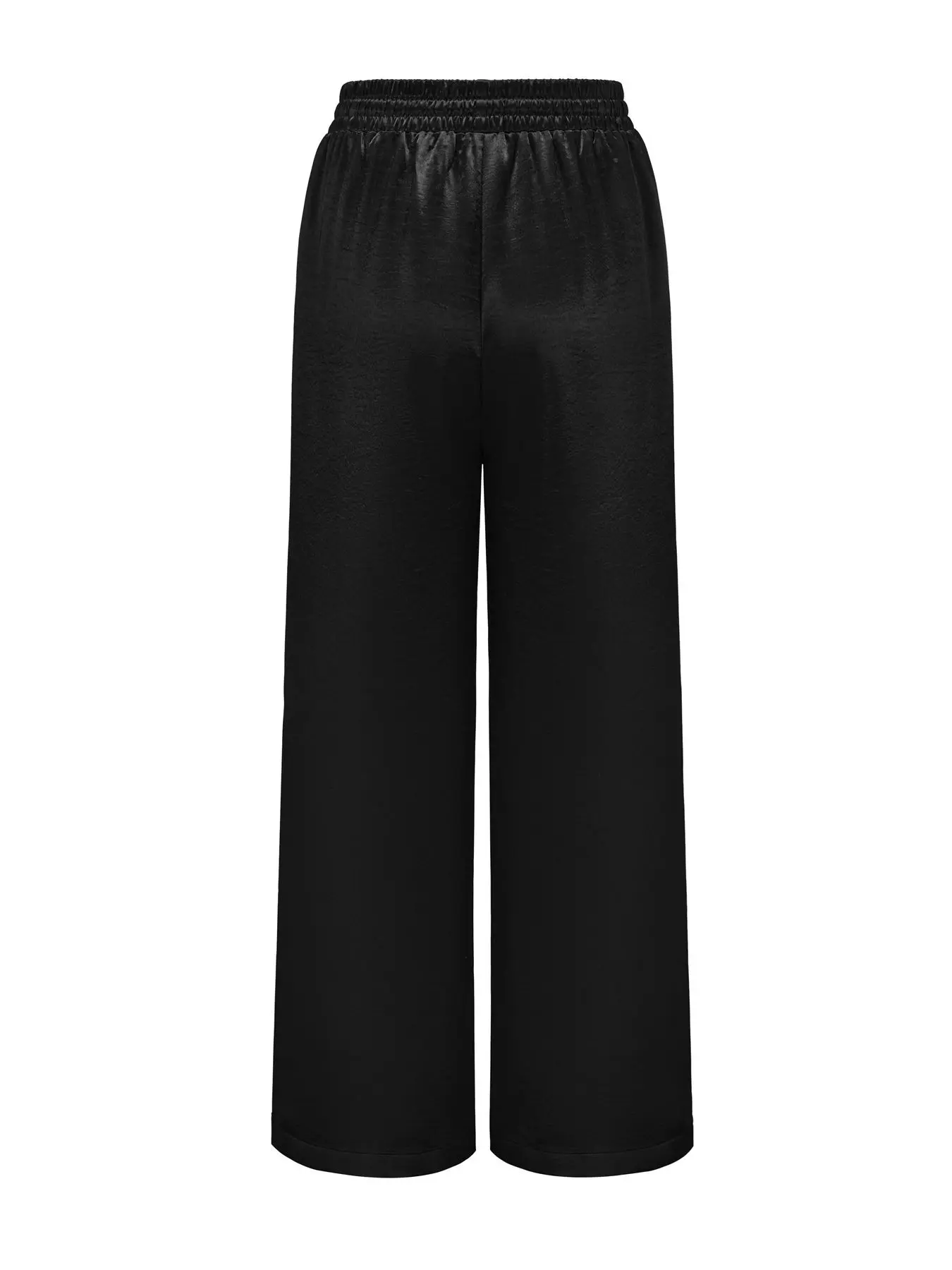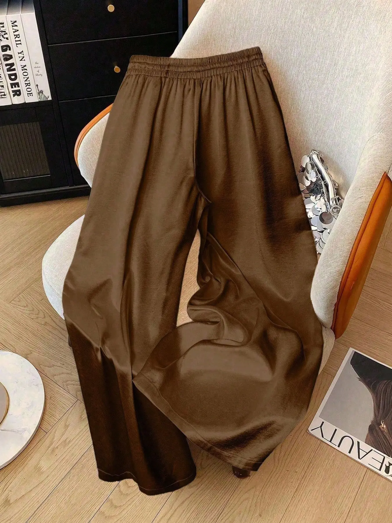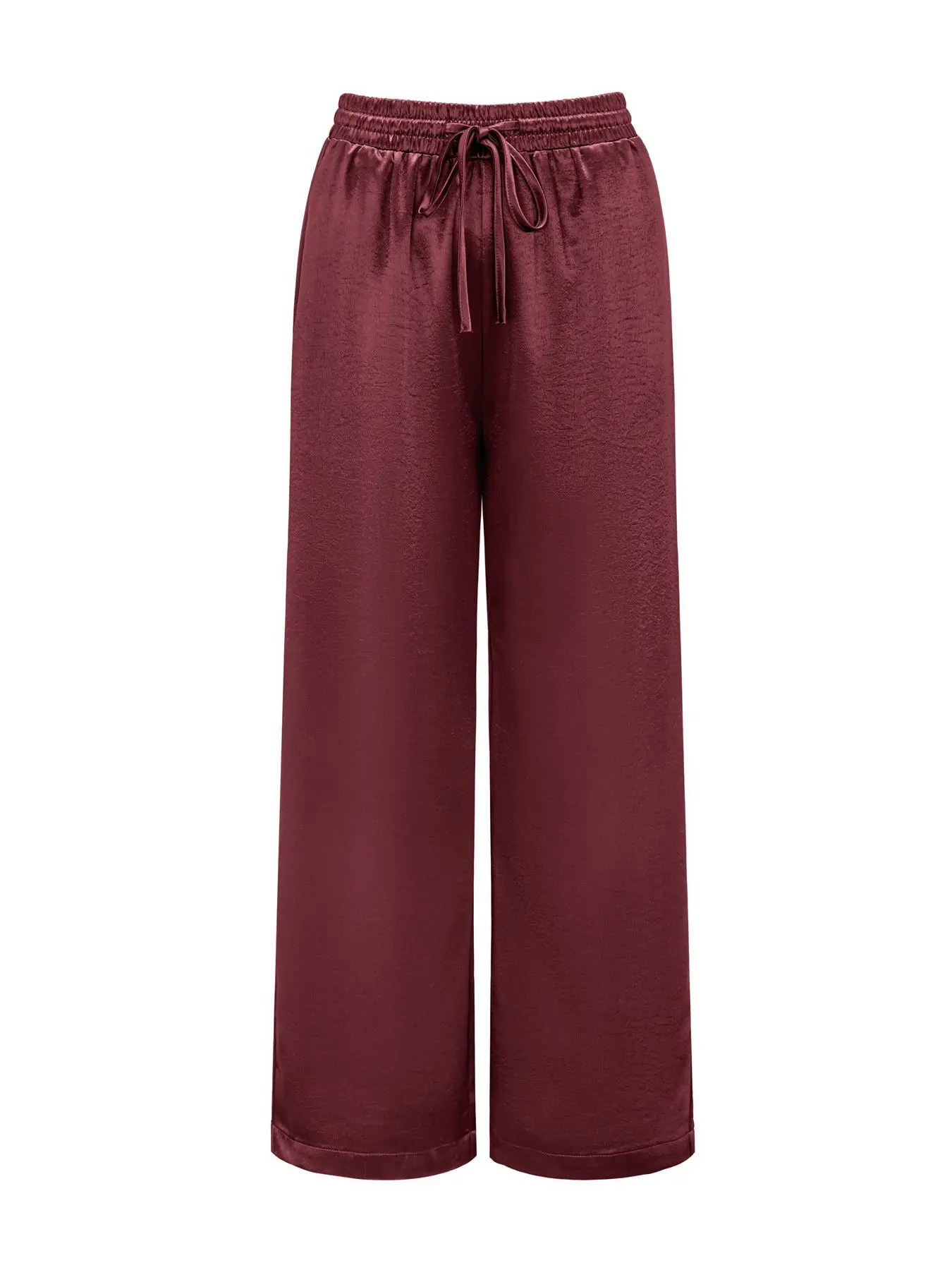 5. Women's Glitter Satin Wide Leg Pants, Casual Loose Fit Elastic Waist Drawstring Pockets, All Seasons Fashion for Home Vacation Party Womenswear