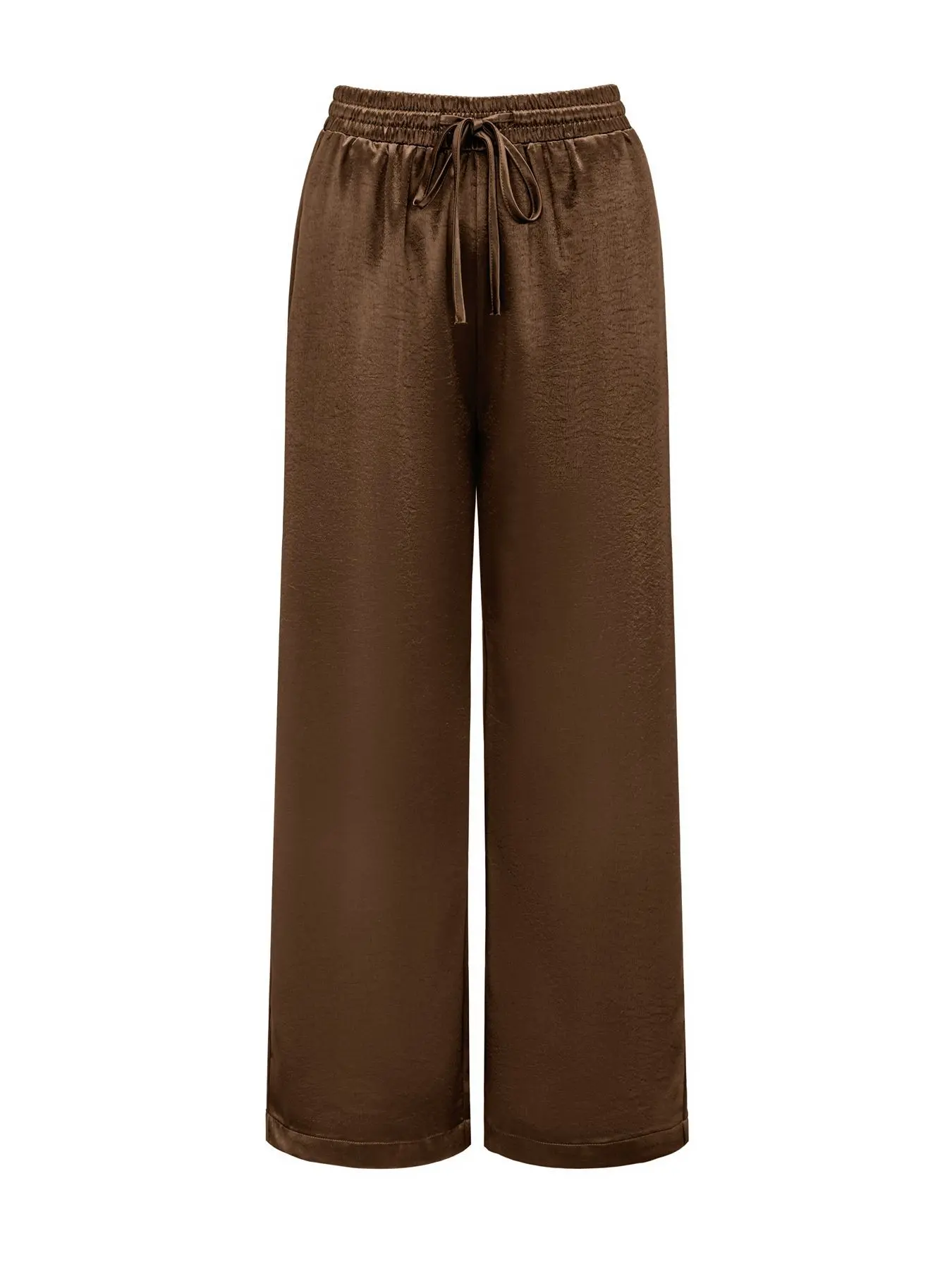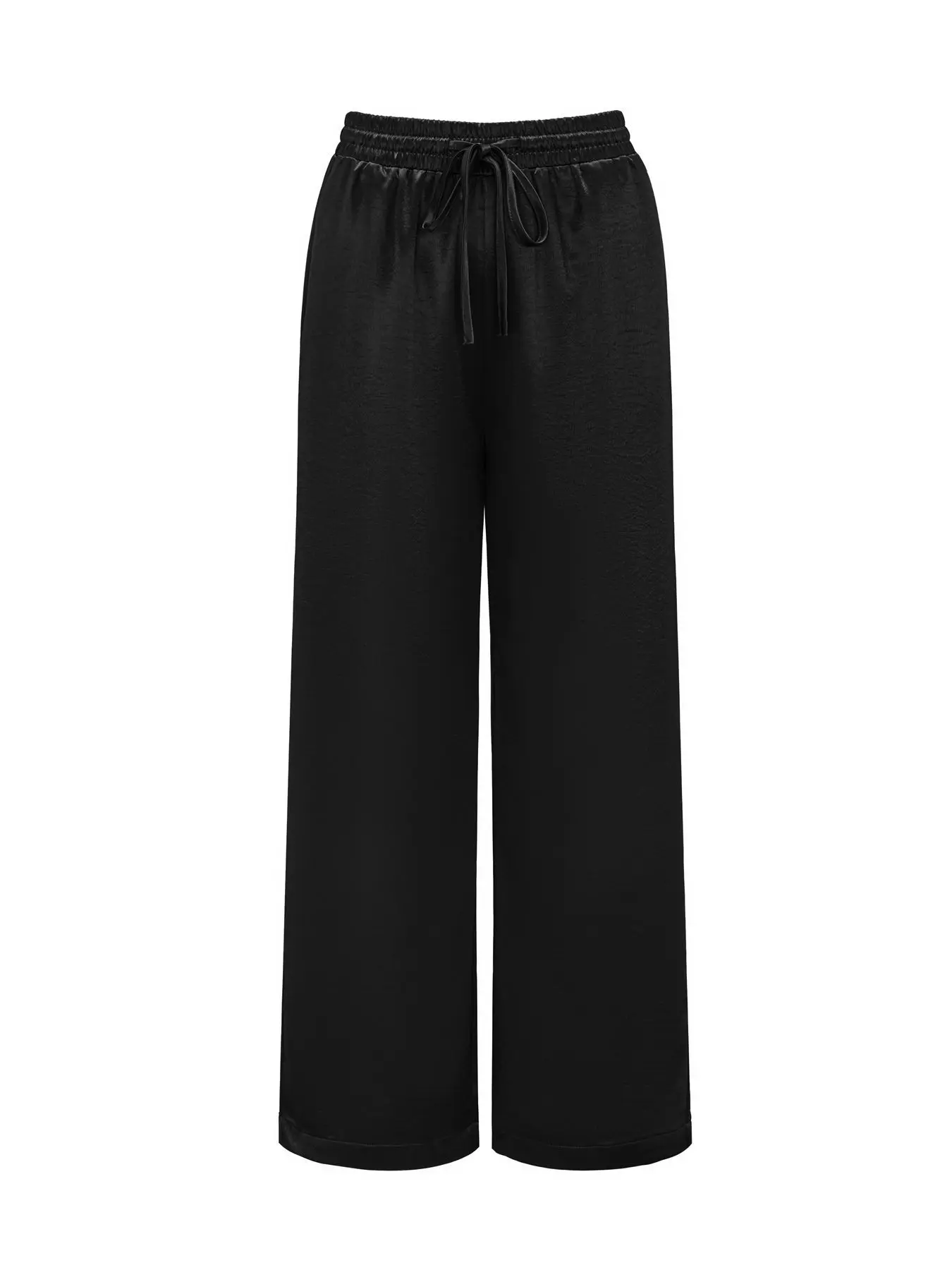 Women's Glitter Satin Wide Leg Pants, Casual Loose Fit Elastic Waist Drawstring Pockets, All Seasons Fashion for Home Vacation Party Womenswear
