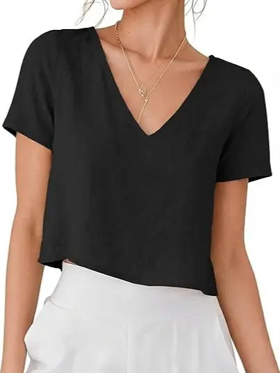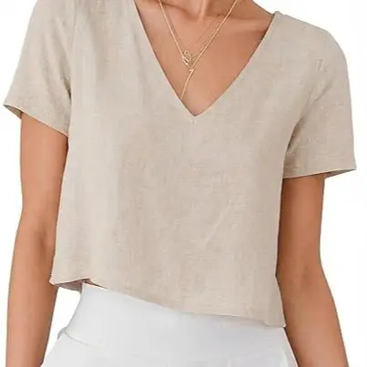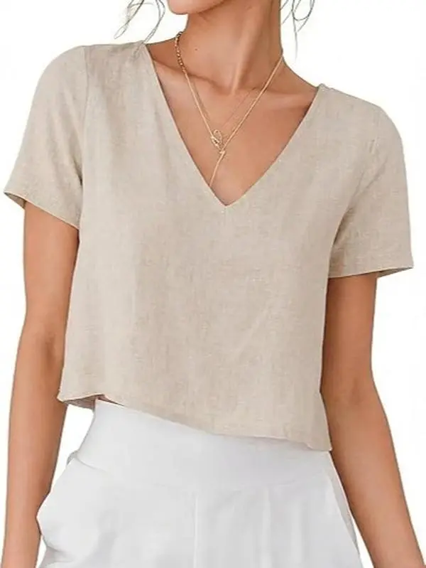 ·Features: V neckline, short sleeve, cropped linen tops