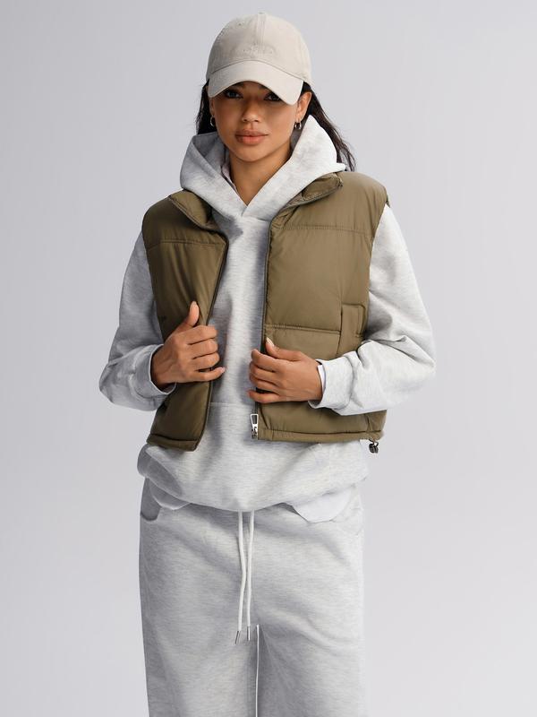 5. Women's Short Winter Warm Down Cotton Vest, Stand Collar Zip Design, Loose Fit Casual Fashion, Sporty Daily Wear