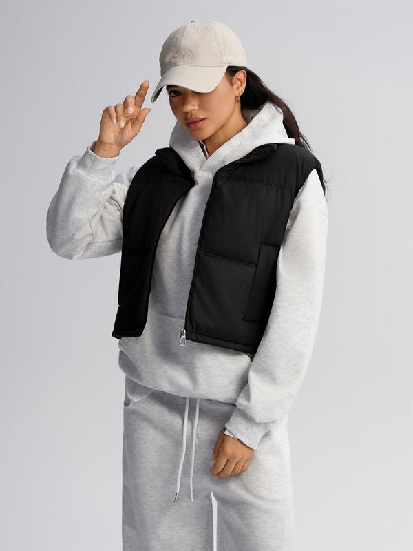 Women's Short Winter Warm Down Cotton Vest, Stand Collar Zip Design, Loose Fit Casual Fashion, Sporty Daily Wear