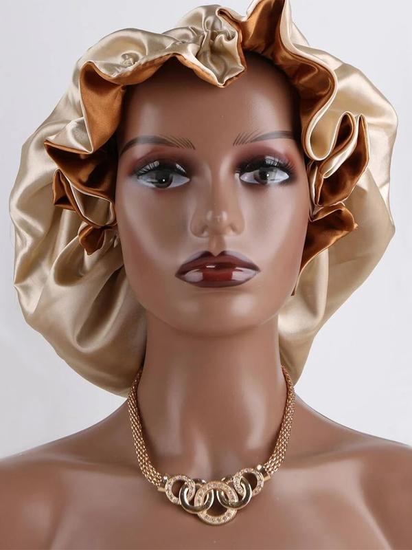 5. Women's Bonnet Two-Layer Pure Color Wave Edge Elastic Silk Smooth Satin Fashion Sleep Cap, Comfortable Soft Breathable Hair Care Hat, Sleeping Bonnet
