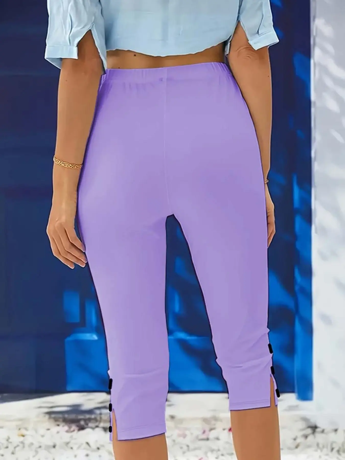 5. Women's Solid Color Skinny Capris Pants, Casual Comfy Breathable Trousers for Daily Wear, Ladies Bottoms for All Seasons