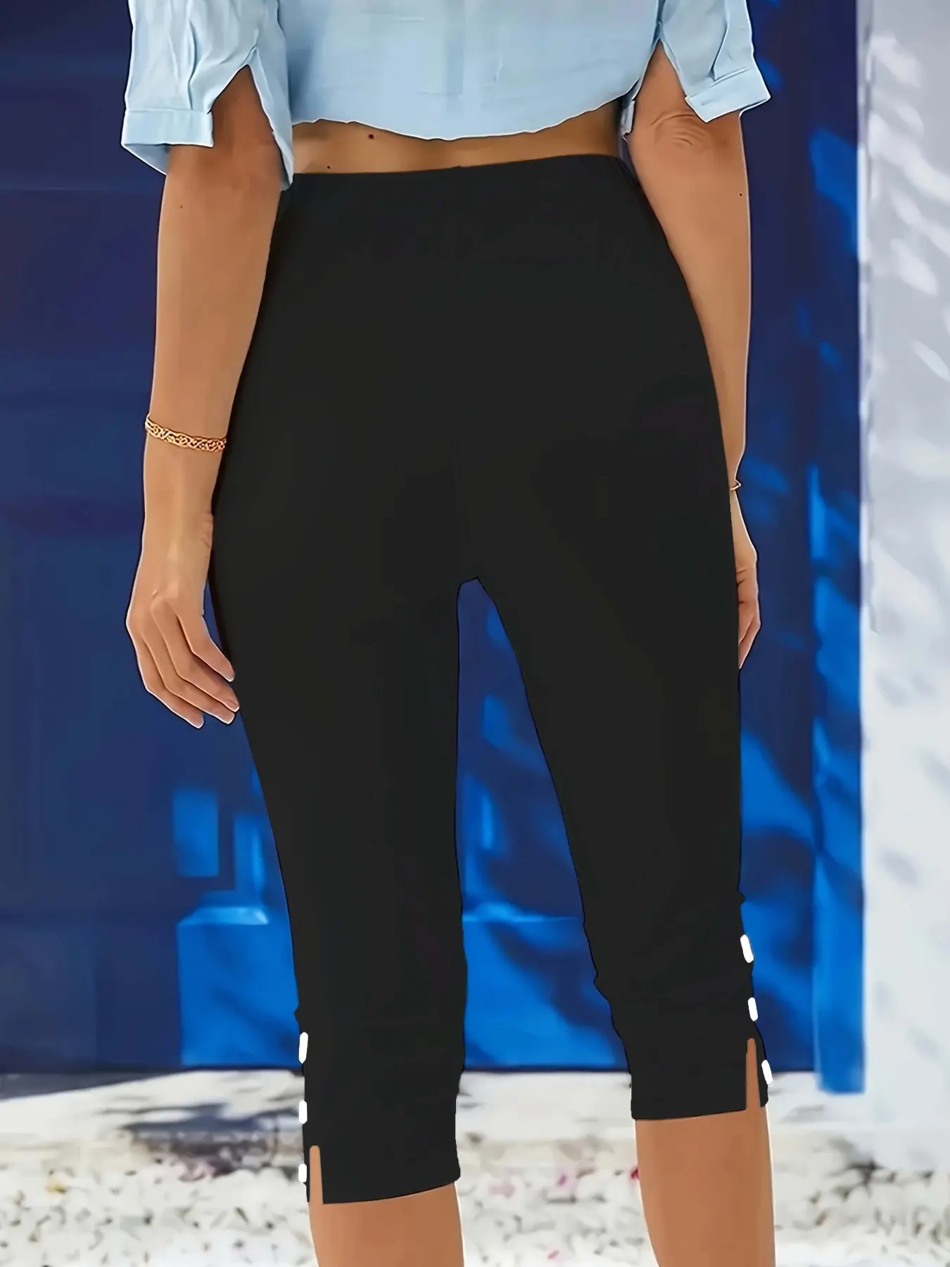 Women's Solid Color Skinny Capris Pants, Casual Comfy Breathable Trousers for Daily Wear, Ladies Bottoms for All Seasons
