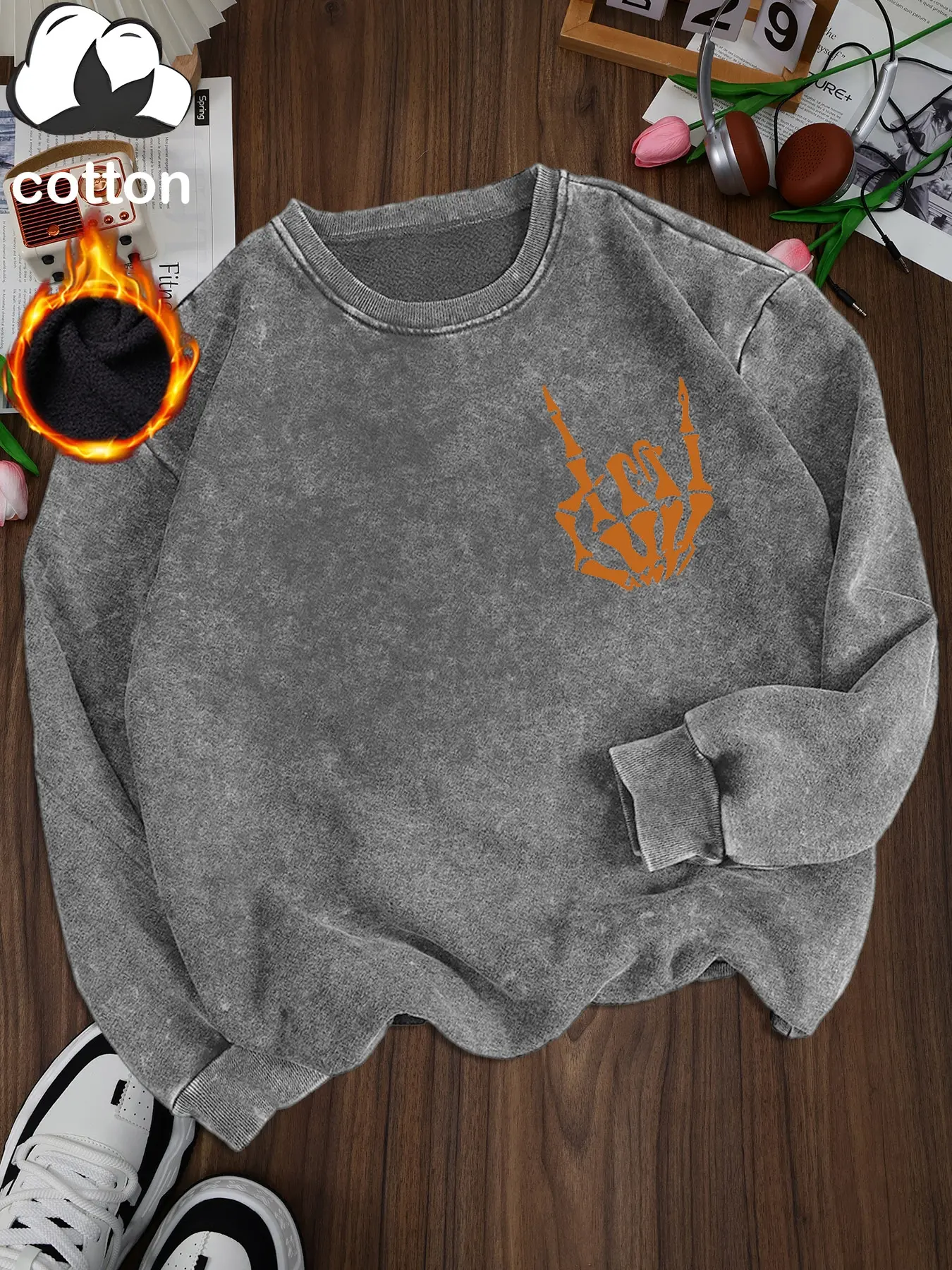Women's Casual Vintage Wash Cotton Pullover Sweatshirt, Round Neck Long Sleeve Fleece Lined Hoodie for Fall Winter Halloween Fashion