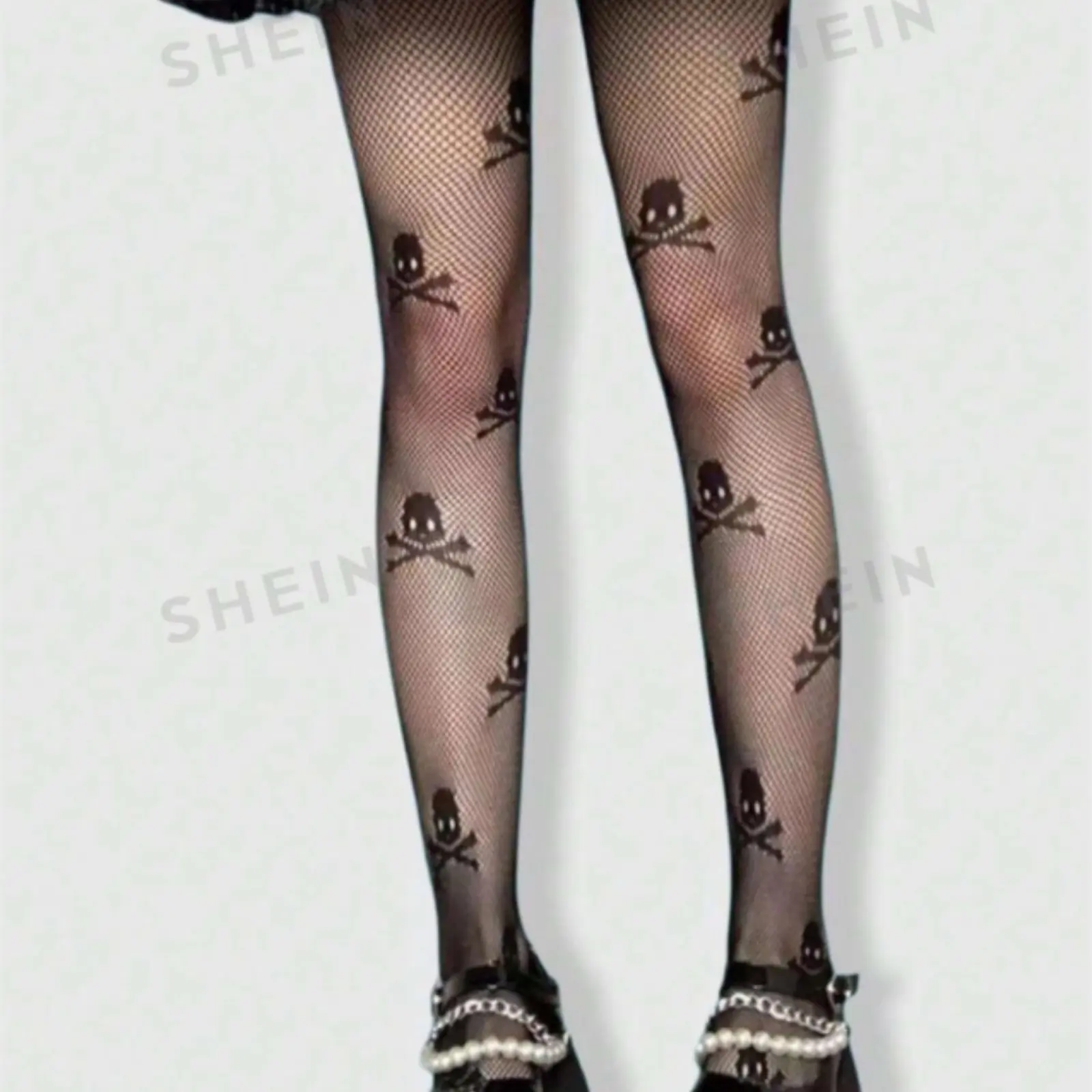Stay stylish and edgy with these Women's Skull Pattern Fishnet Tights, perfect for any occasion.