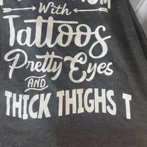 I like the thick tank style. The wording is nice and thick and bold people can read it from a far very soft and smooth very cute and accurate shirt. Go get yourself one.