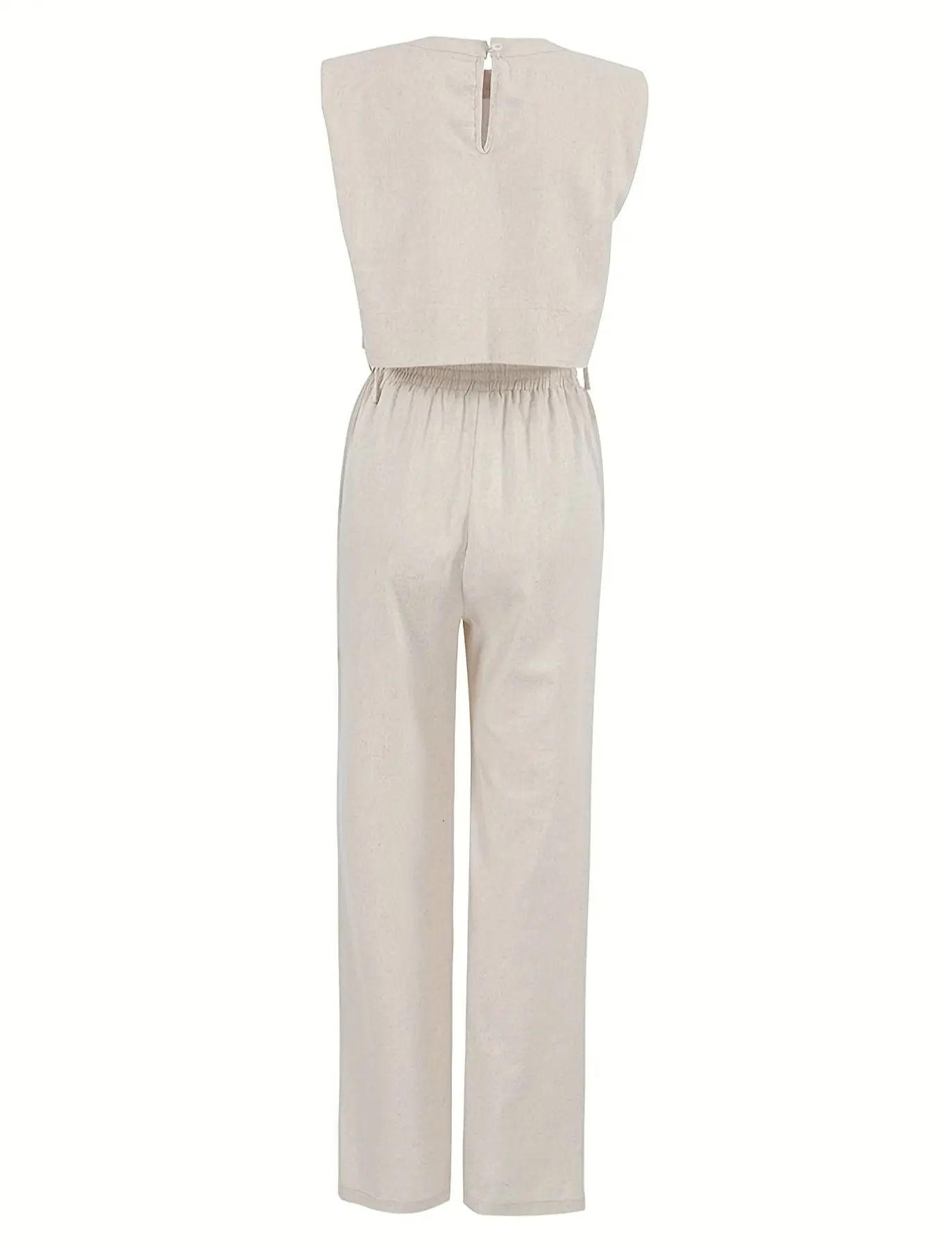 5. Women's Round Neck Side Seam Tie Shoulder Sleeveless Top Long Pants Two-Piece Set, Fitted, Casual Fashion, Summer Wear