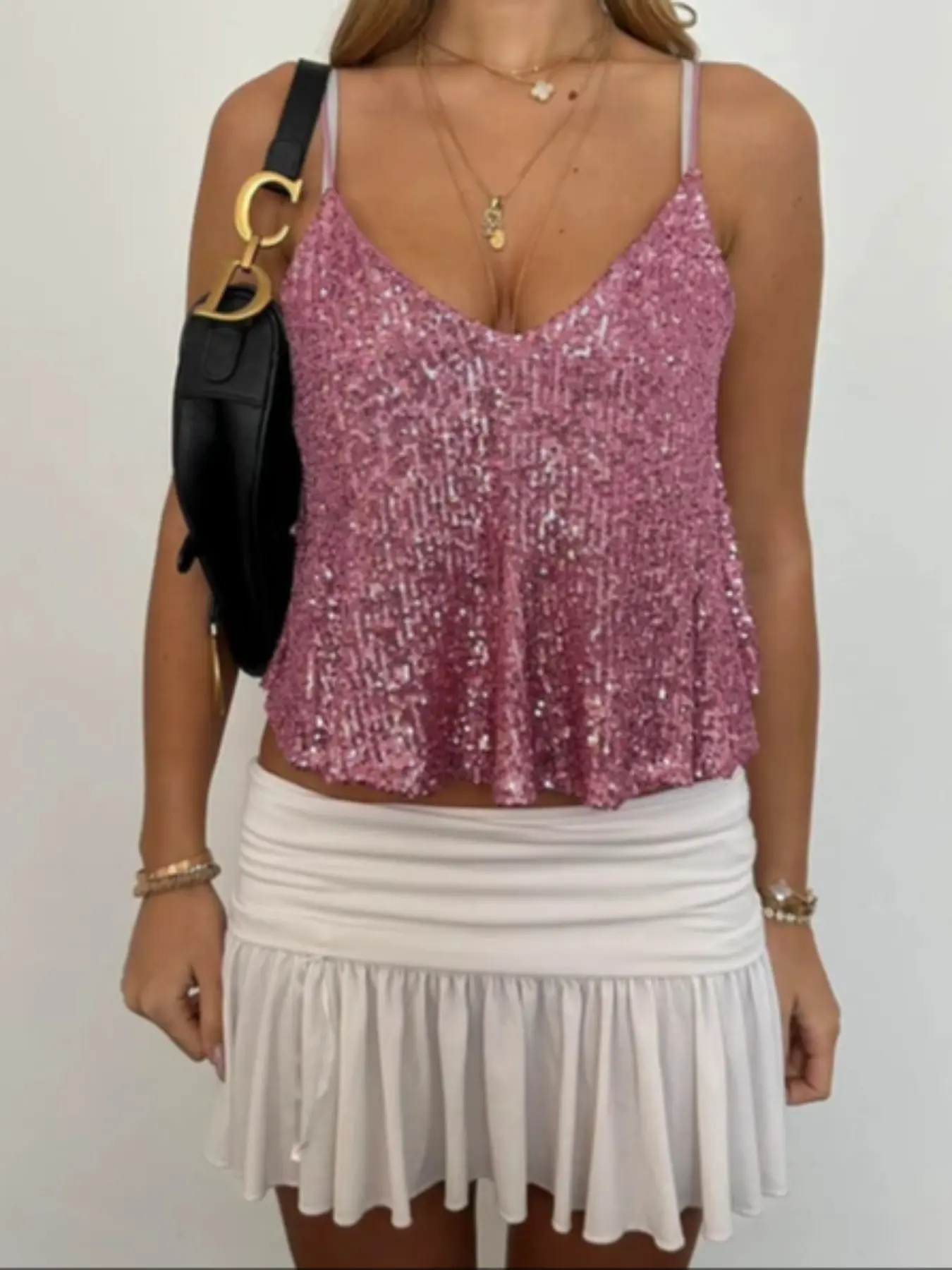 γV-neck Cutγ: Featuring a seductive V-neck, this top enhances the neckline and adds an alluring touch to your attire.