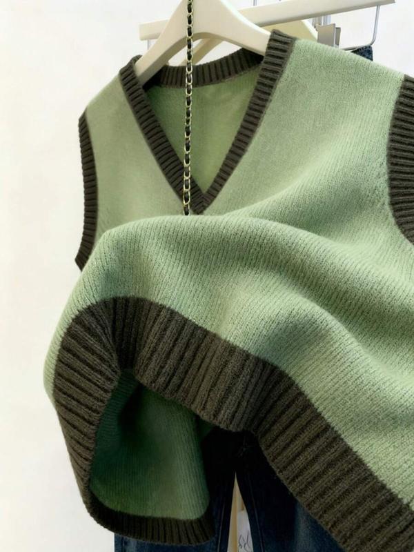 Women's Knitted Sweater Vest, Spring & Fall Casual Loose Fit Round Neck Top, Stylish Small Batch Design, Versatile Layering Piece#OOTD #fyp #womens #fashion #TikTokMadeMeBuyIt