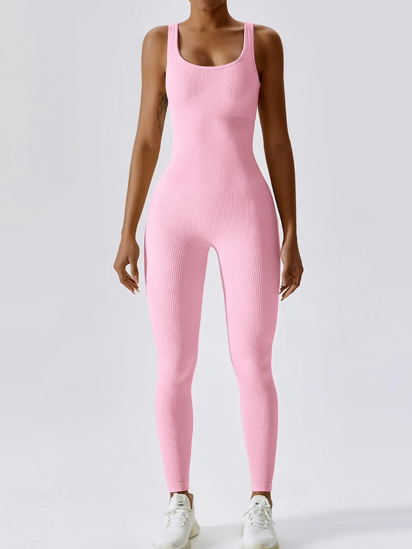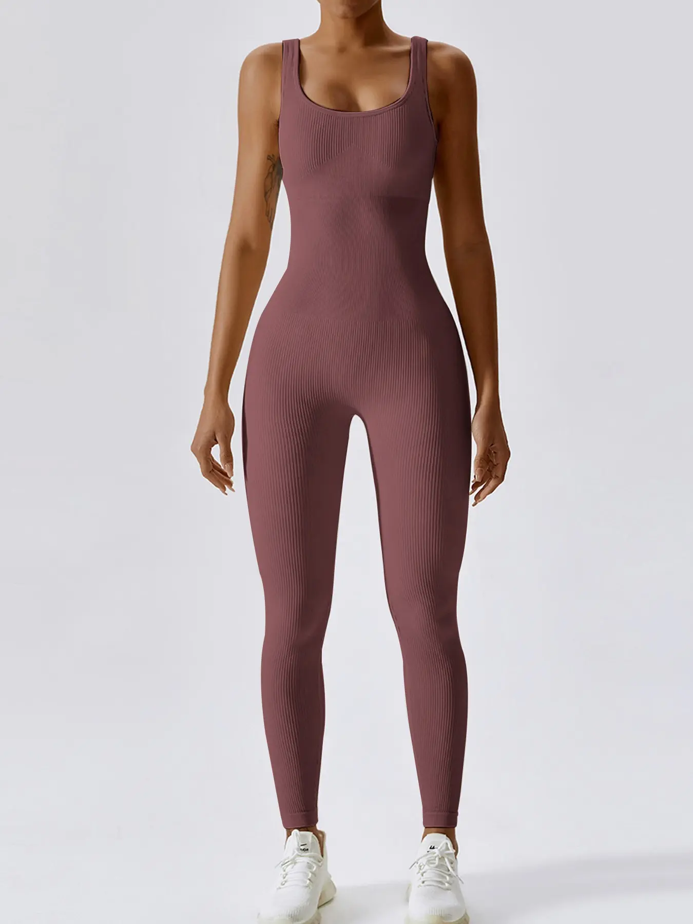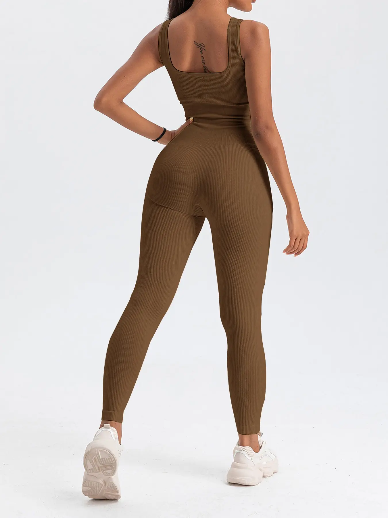 Ribbed square-neck jumpsuit hits different 🤎 Effortless sleek chic for lazy days and casual outings! #RibbedJumpsuit #SquareNeck #SleevelessStyle #ComfyChic