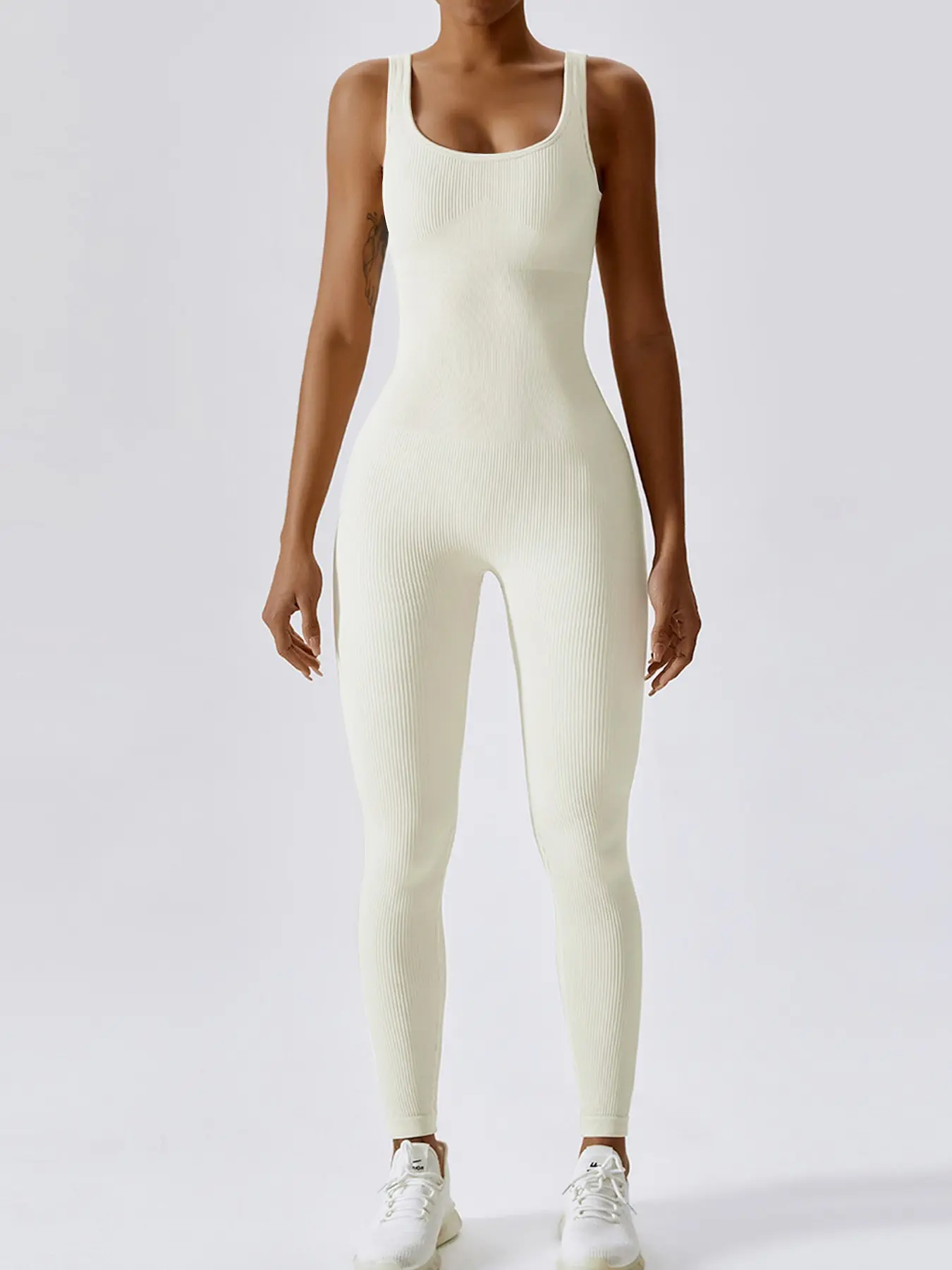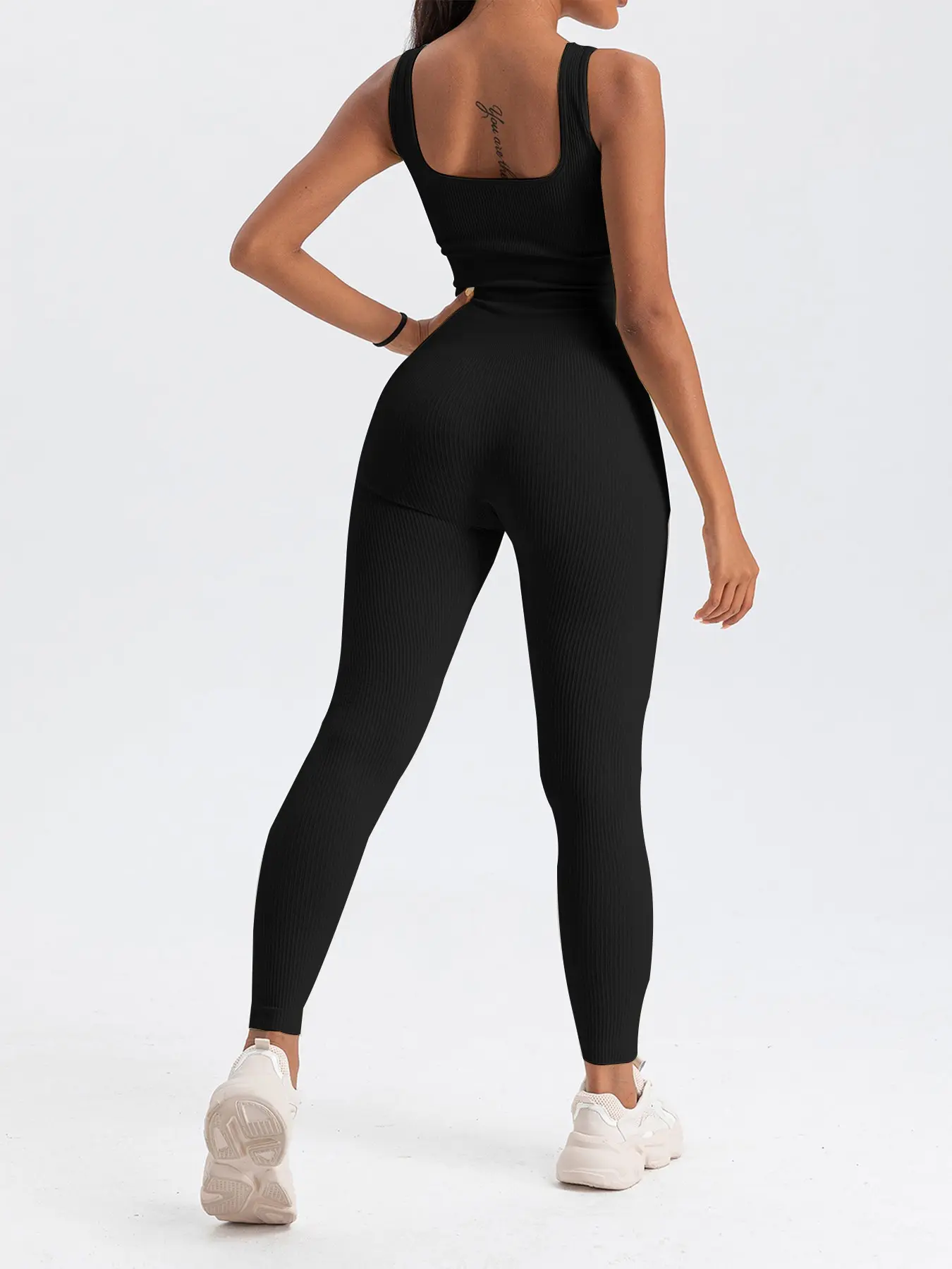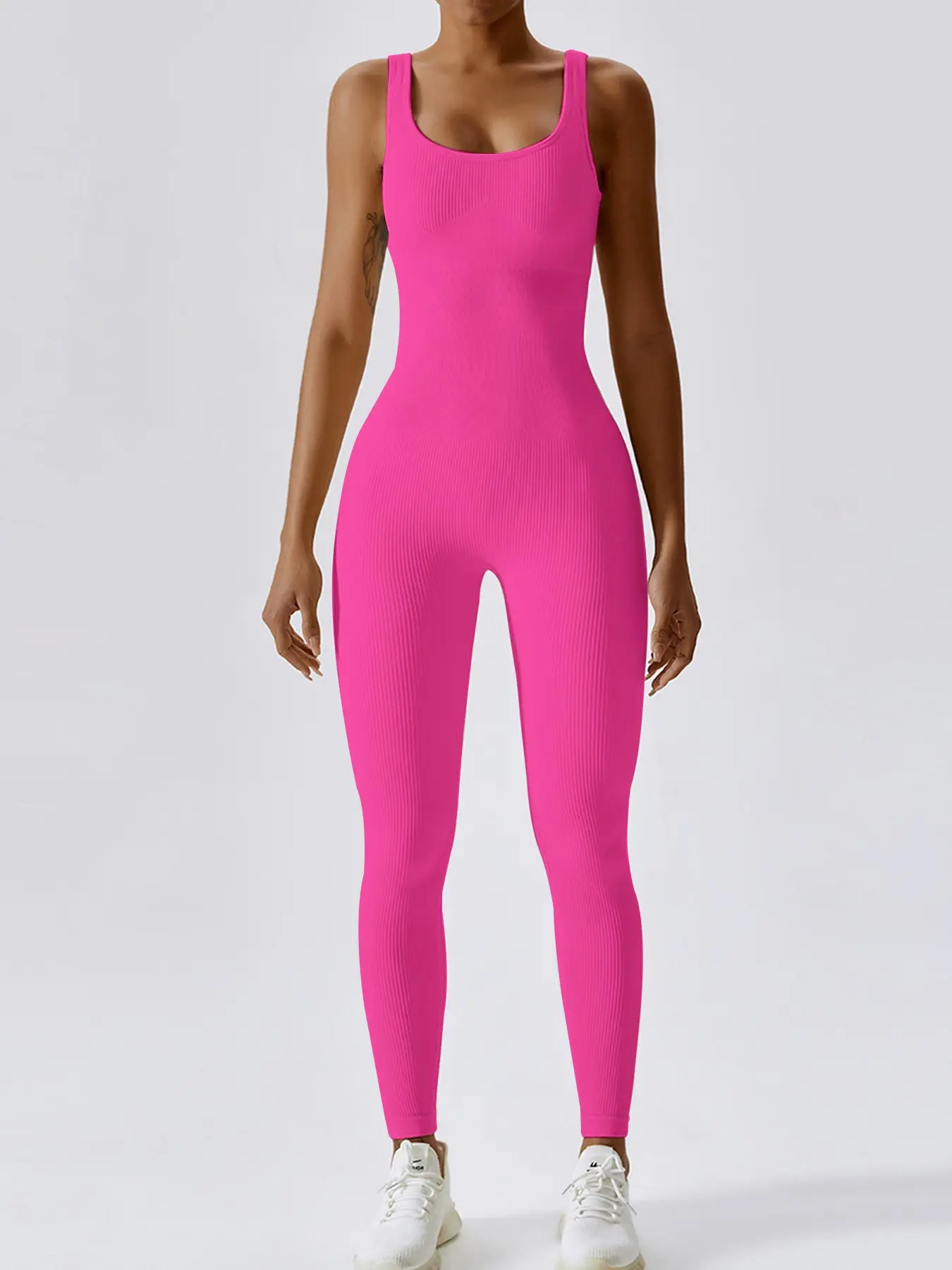 Ribbed square-neck jumpsuit hits different 🤎 Effortless sleek chic for lazy days and casual outings! #RibbedJumpsuit #SquareNeck #SleevelessStyle #ComfyChic