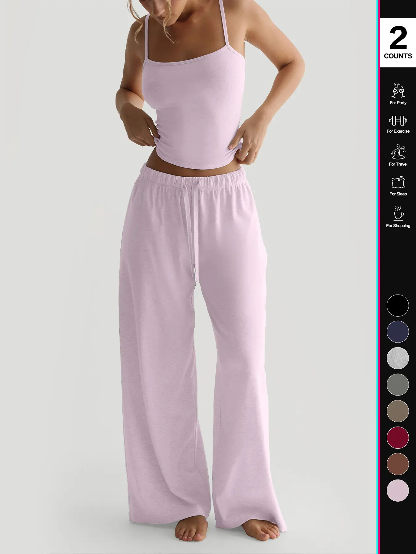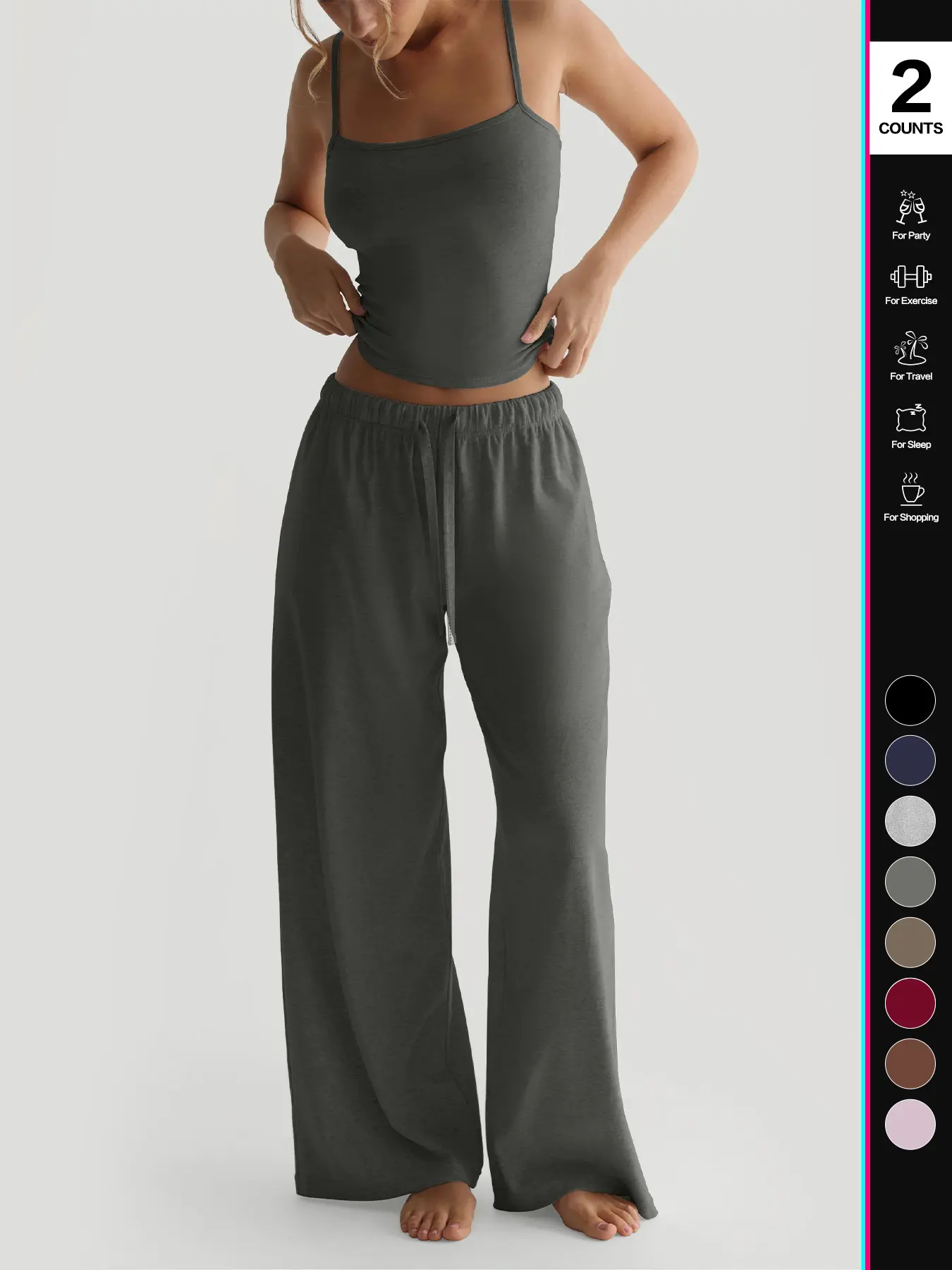2026 Women's Four-Season Two-Piece Set, Strapless Vest Top & Wide-Leg Drawstring Elastic Waist Pants, Casual Loose-Fit Fitted Comfortable with Pockets