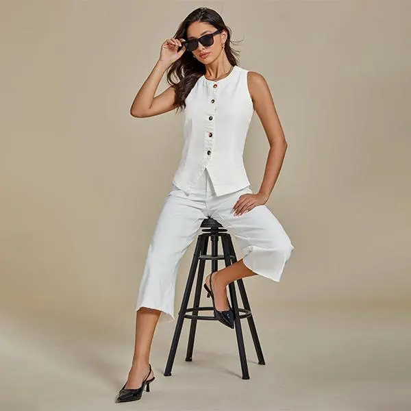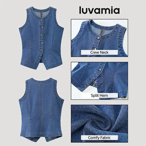 Get ready to turn heads with our chic jean vest for women. Featuring crew neck, sleeveless, button down and split hem design that adds a fresh twist to your everyday style.